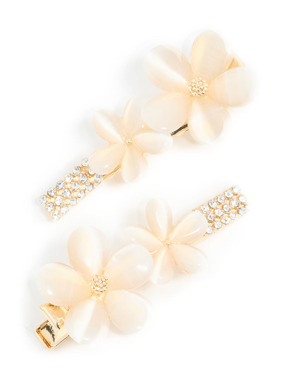 Gold Diamante Pave Double Flower Hair Clips 2-Pack