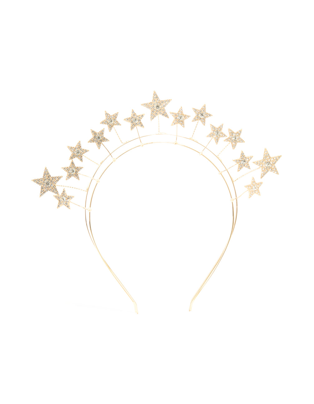 Shine bright this New Year’s Eve with this Gold Diamante Star Headband , it's the perfect party-ready accessory to top off your celebration look! Featuring a sleek gold-tone band adorned with shimmering diamante star details, this headband brings a playful yet chic vibe to any outfit. Whether you're hitting the dance floor, hosting a festive gathering, or heading to a glamorous party, this headband is your go-to for effortless style. Pair it with a shimmering dress or a casual jumpsuit to add a touch of fun and sparkle to your ensemble. Lightweight and easy to wear, it’s a dazzling finishing touch to make your New Year’s plans truly magical!