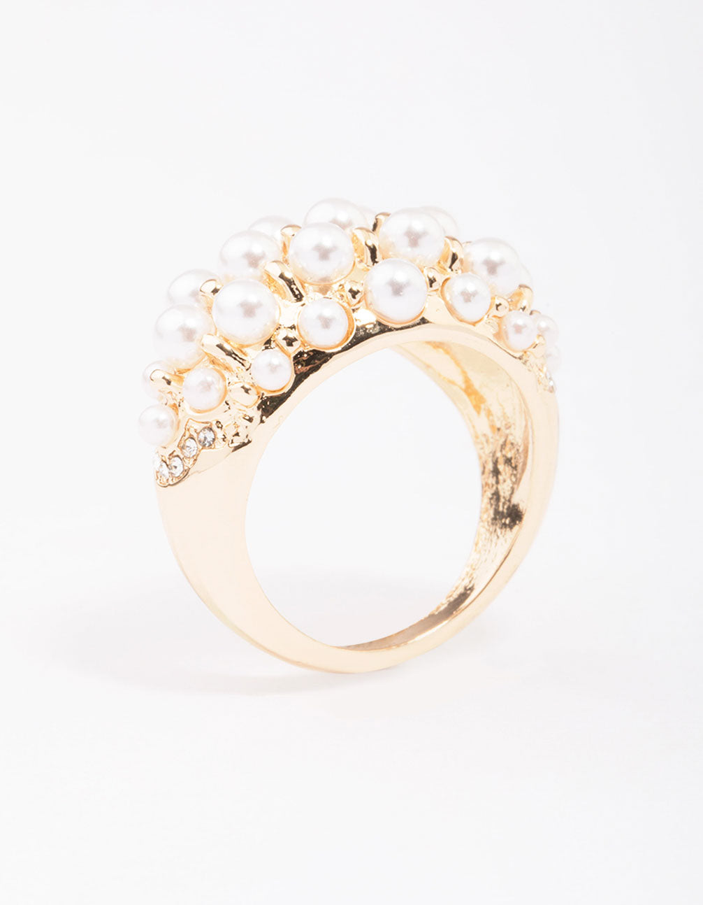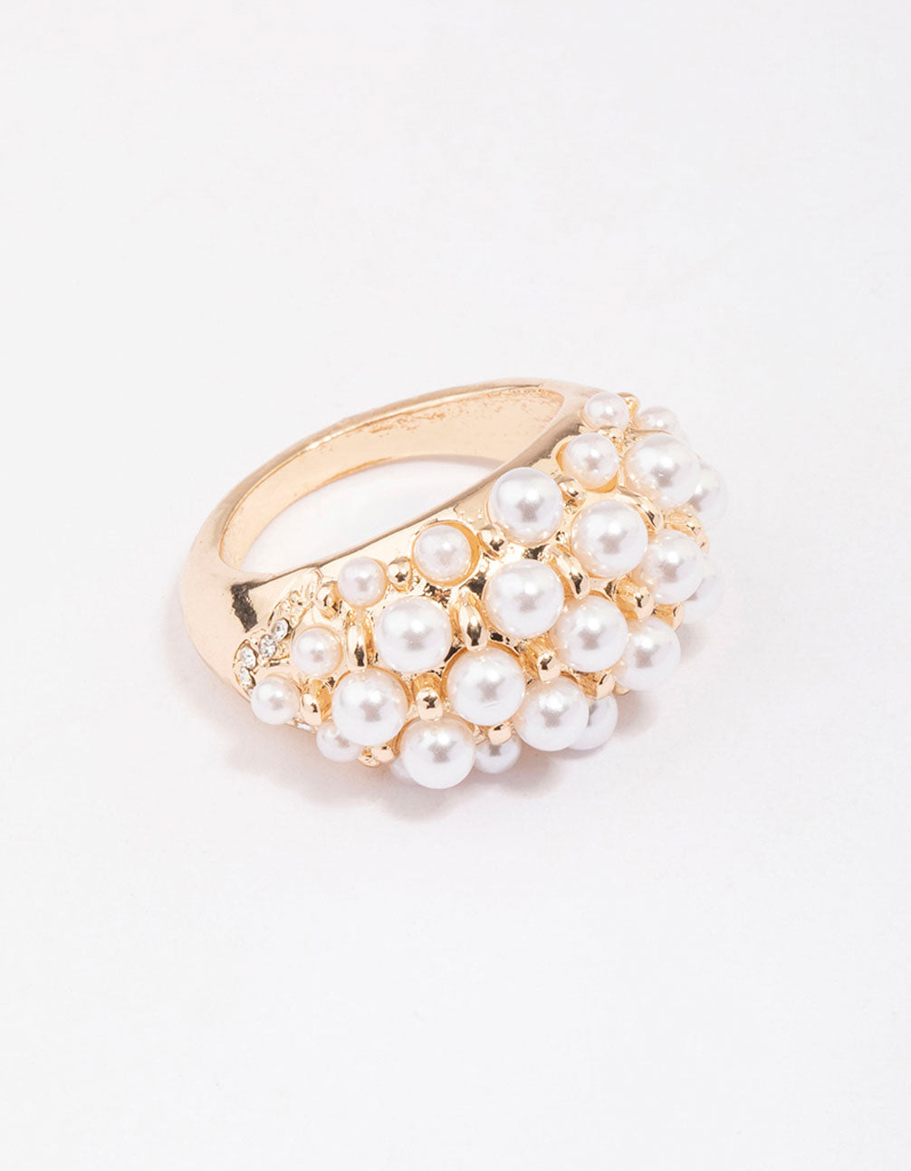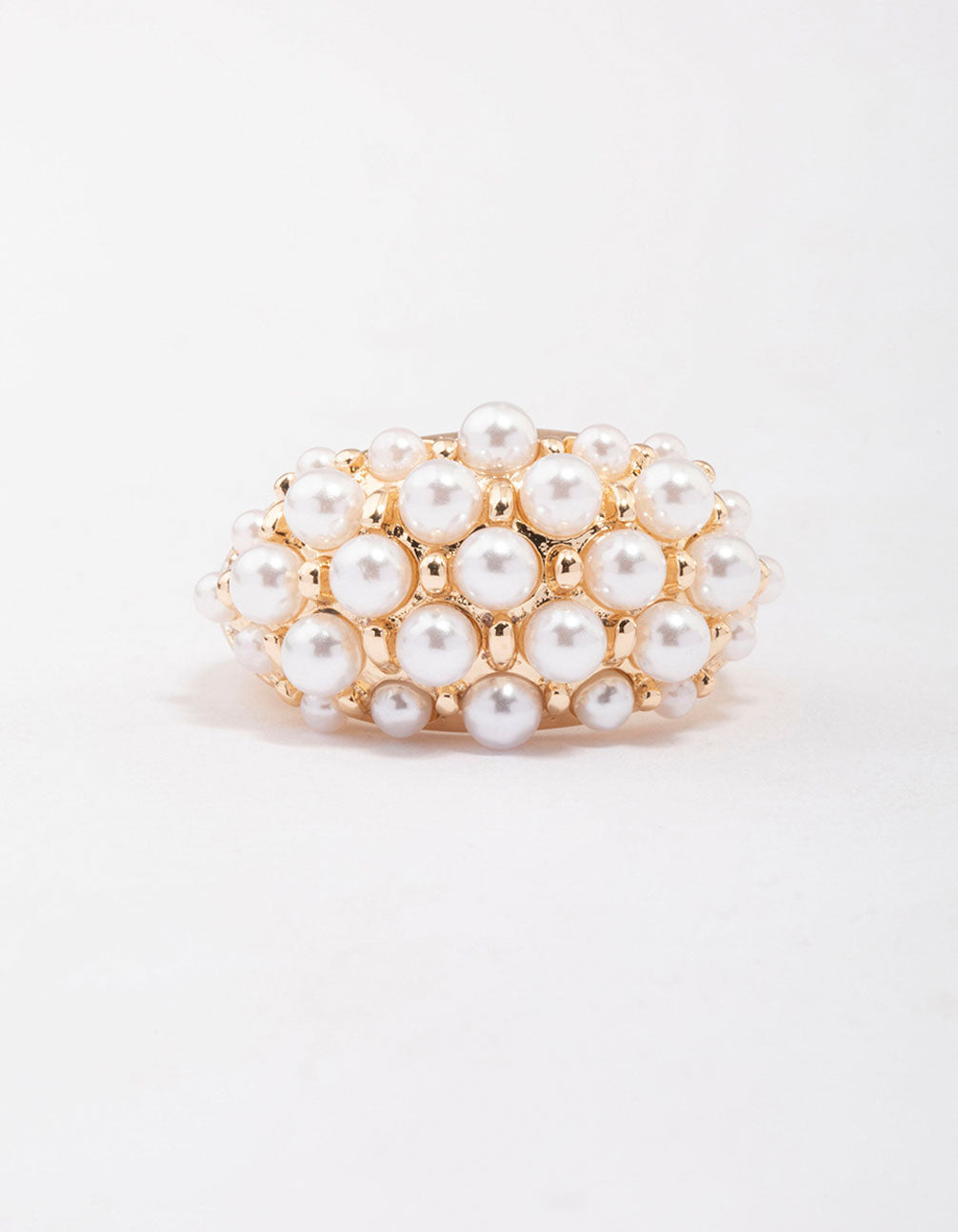 For a decorative touch to your stack, style this gold-toned cocktail ring. This ring features a domed silhouette, adorned with a collection of mini pearls for a refined finish.