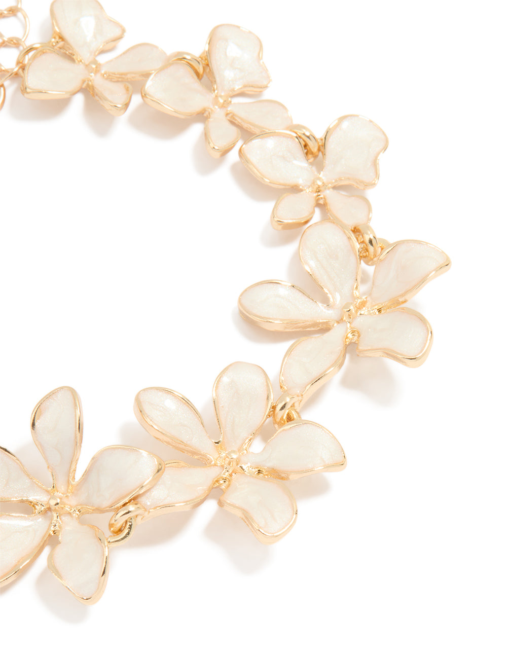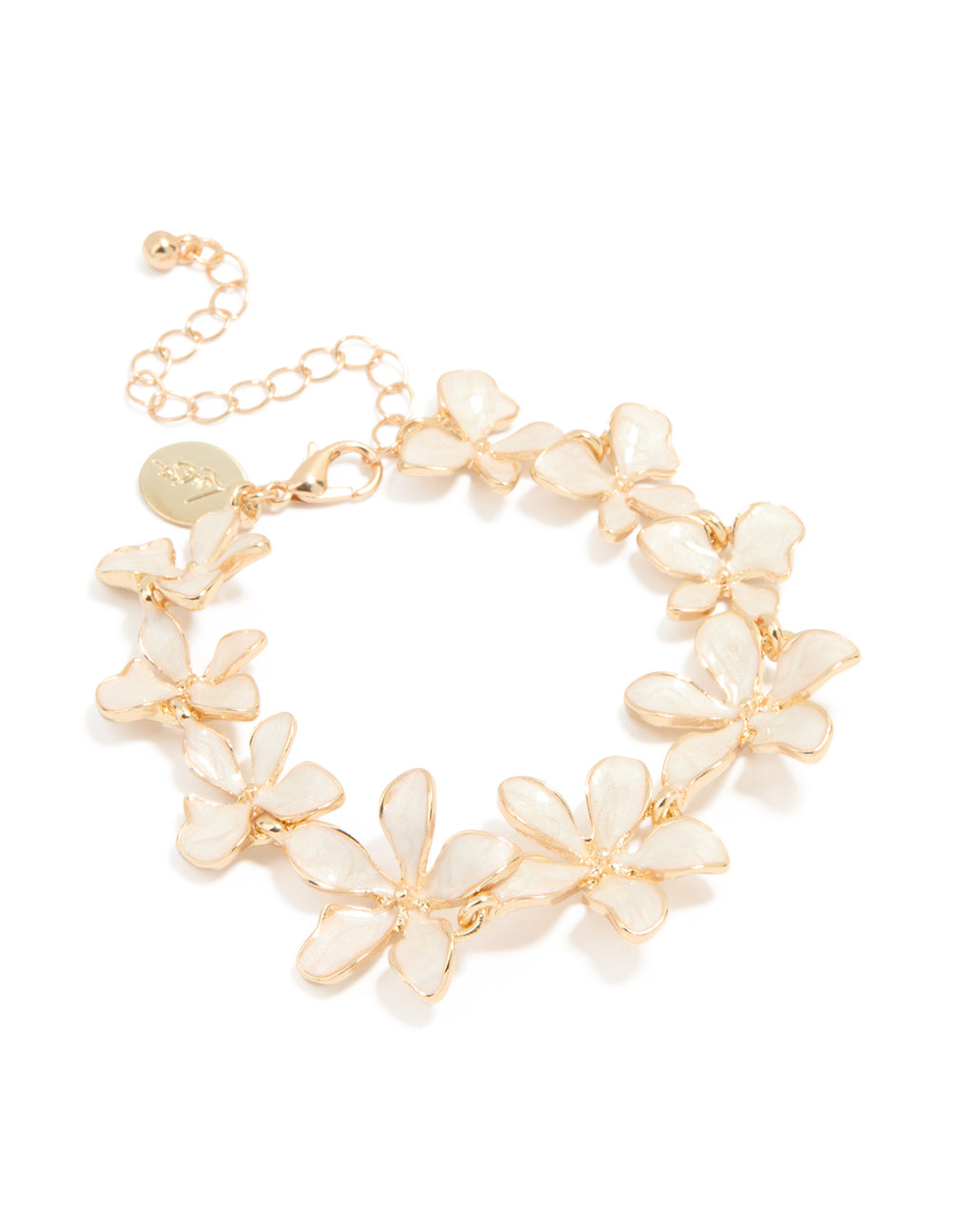Add a splash of nature-inspired elegance to your look with this Gold Enamel Flower Bracelet. Crafted from gold toned metal and adorned with delicate enamel flower designs, this bracelet is both youthful and timeless. Its gold finish gives it a polished, versatile style, making it ideal for day-to-day wear or special occasions. Pair it with a flowy dress for a boho vibe or stack it with other bracelets to create a stylish layered look. Perfect for brunch with friends, a garden party, or simply elevating your everyday outfit, this bracelet is a must-have accessory for anyone who loves jewellery with a touch of charm and sophistication.