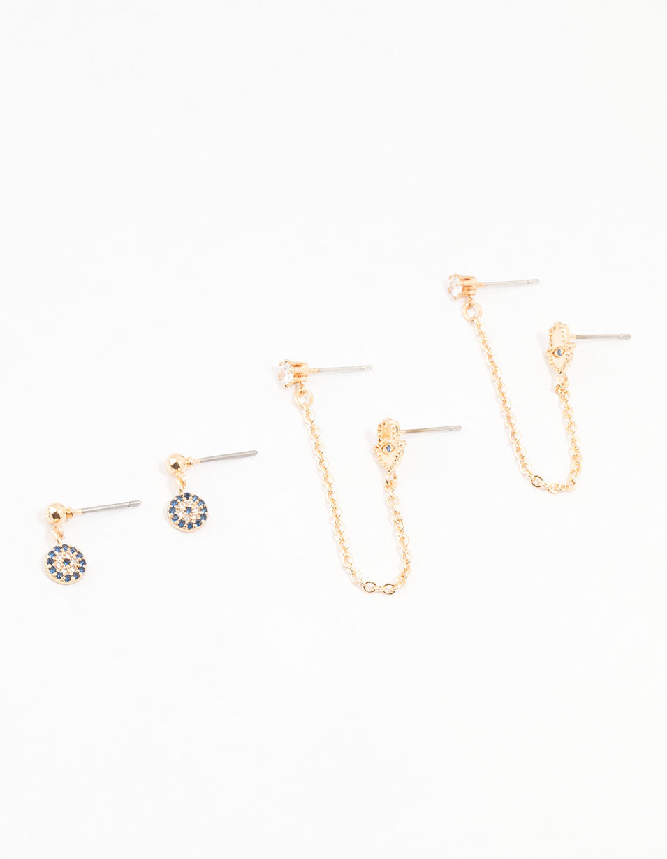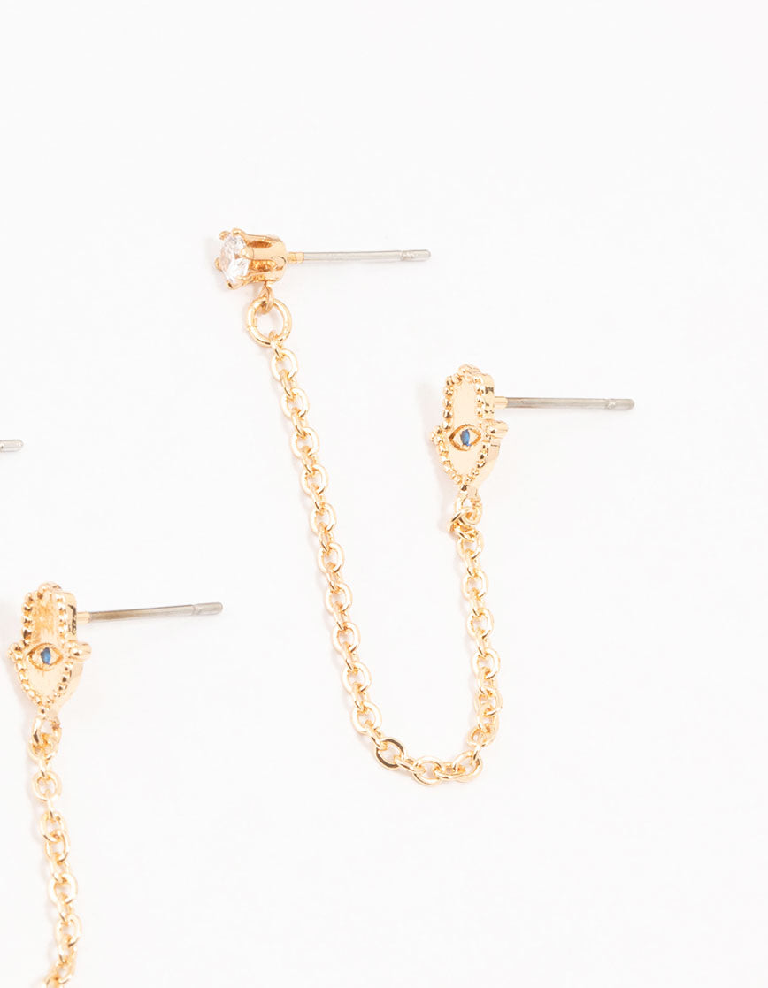 Gold Evil Eye & Hamsa Hand Chain Earrings 3-Pack