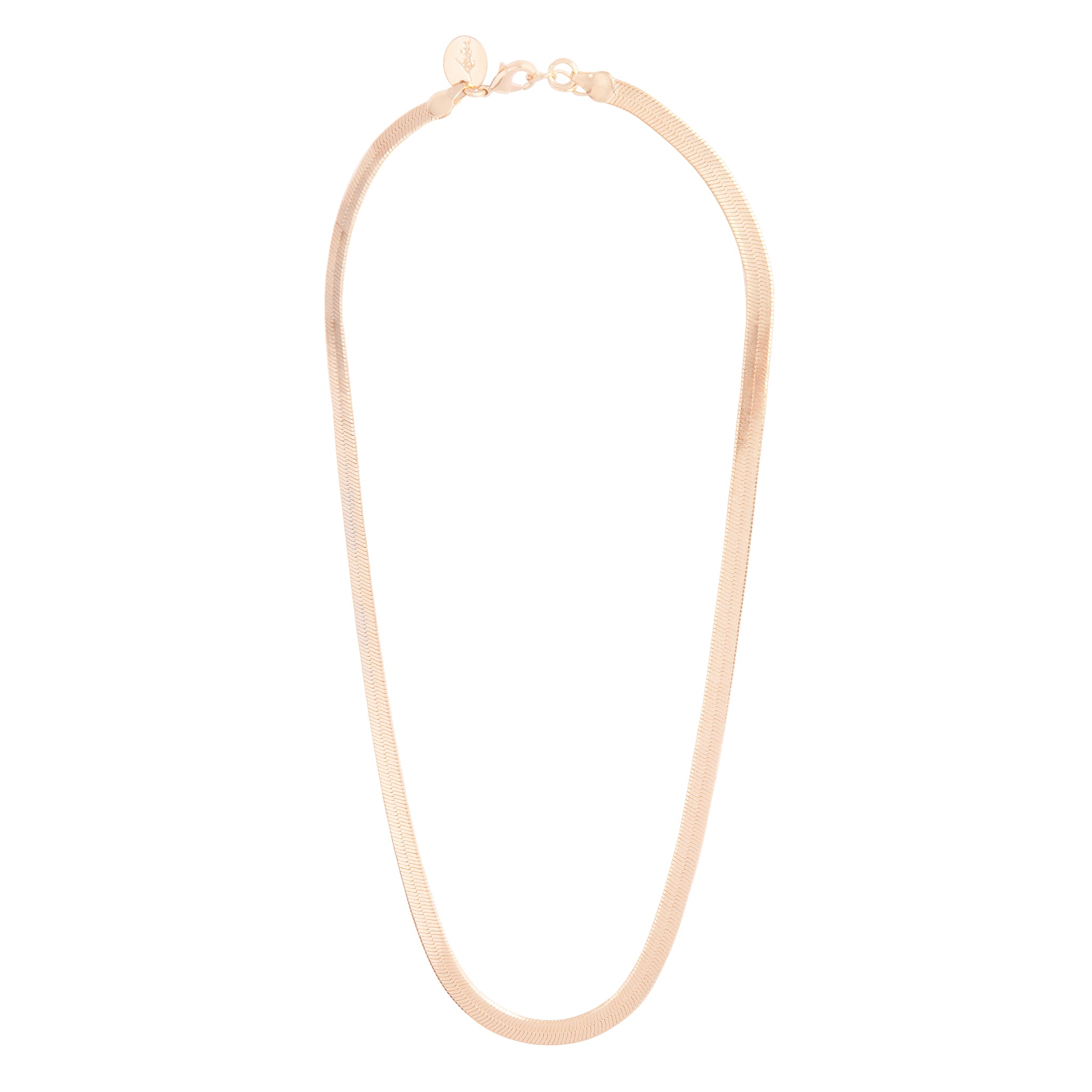 This classic gold toned necklace features a traditional snake chain design that will never go out of style.