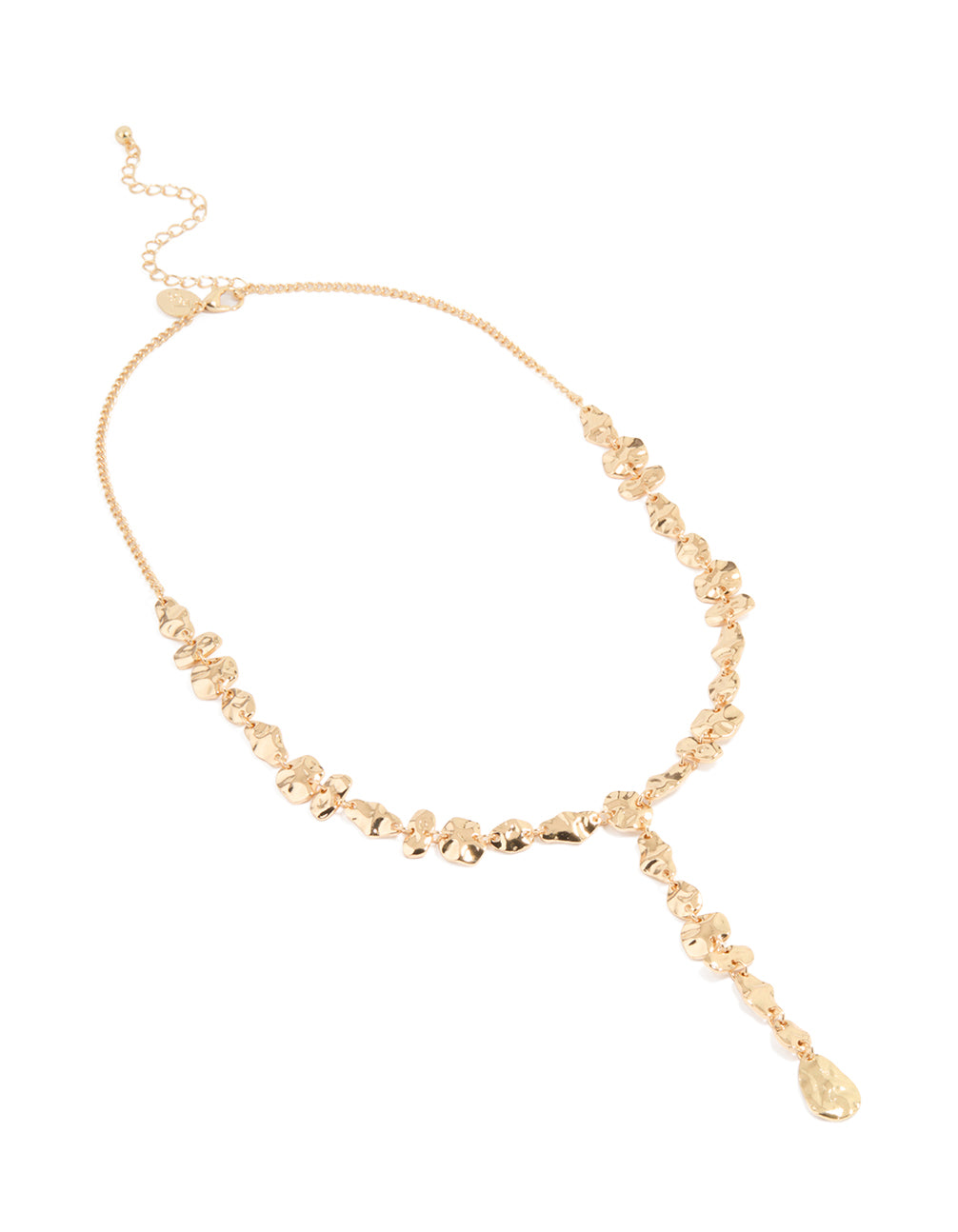 Elevate your style with this Gold Flat Organic Shape Lariat Necklace. This lariat-style necklace features a sleek, organic flat shape that adds a contemporary edge to your look. Crafted in a radiant gold finish, it's perfect for layering with other jewellery or wearing solo for a minimalist statement. Whether you're pairing it with a flowy dress for a daytime outing or a chic blouse for a night out, this versatile necklace complements any outfit. Lightweight and effortlessly elegant, it's an easy way to bring a touch of modern sophistication to your everyday or occasion wear. Perfect for those who love timeless, gold-tone jewellery with a unique twist!