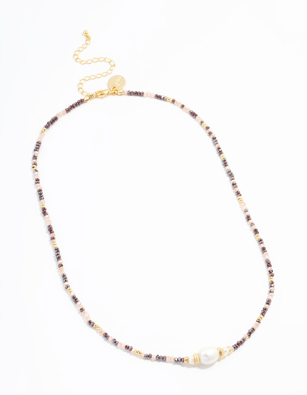 Gold Freshwater Pearl & Mini Purple Bead Necklace
