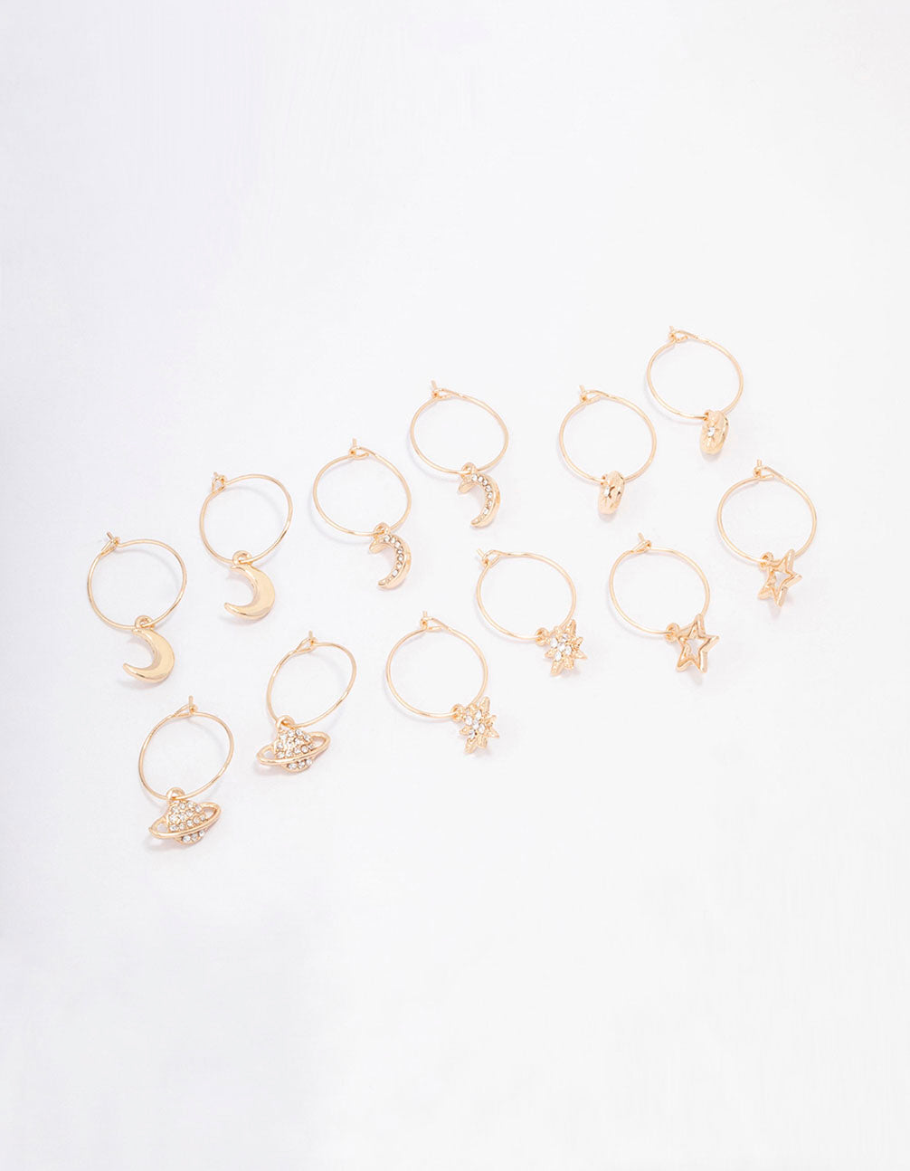 Gold Galaxy Wire Hoop Earring 6-Pack