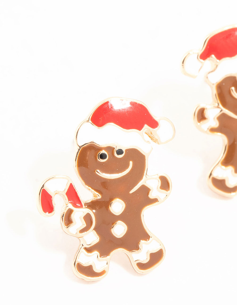 Add a touch of festive charm to your jewellery box with these Gold Gingerbread Man With Candy Canes Stud Earrings. These adorable stud earrings feature playful gingerbread man shapes paired with colourful candy canes, making them the perfect accessory for the holiday season. Crafted with a gold finish, these studs offer a warm and classic look that blends fun and style effortlessly.