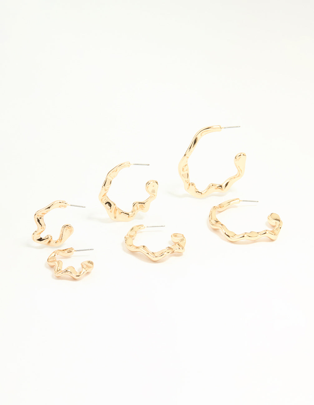 Gold Graduating Wavy Hoop Earrings 3-Pack