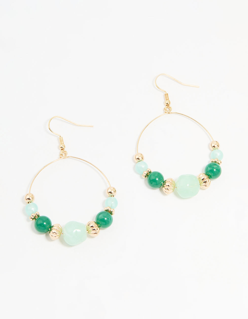 Gold Green Beaded Circular Drop Earrings