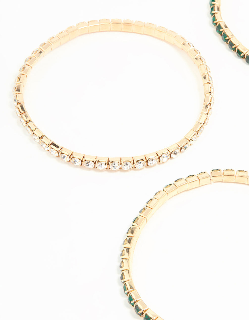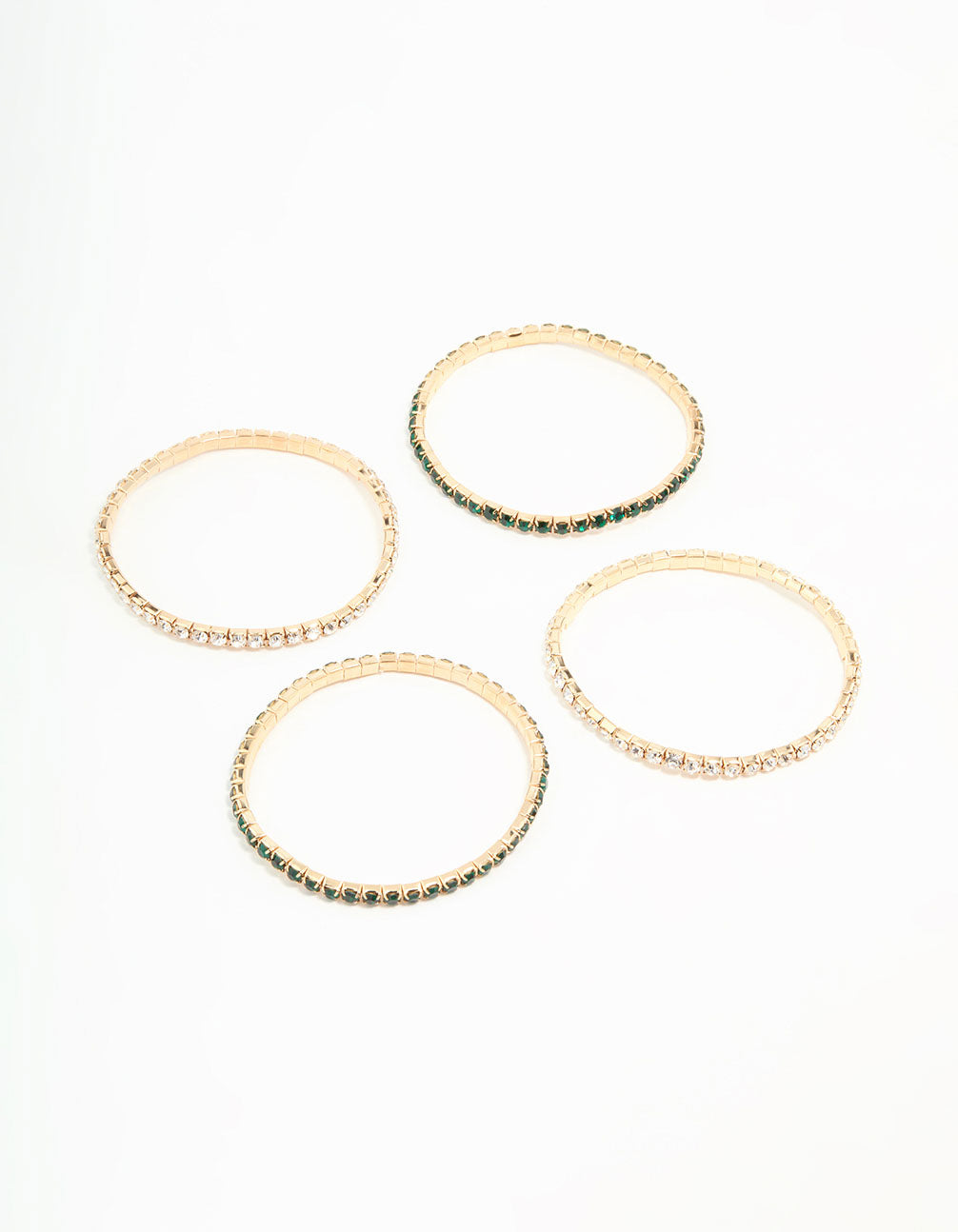 Gold Green Diamante Stretch Bangles 4-Pack