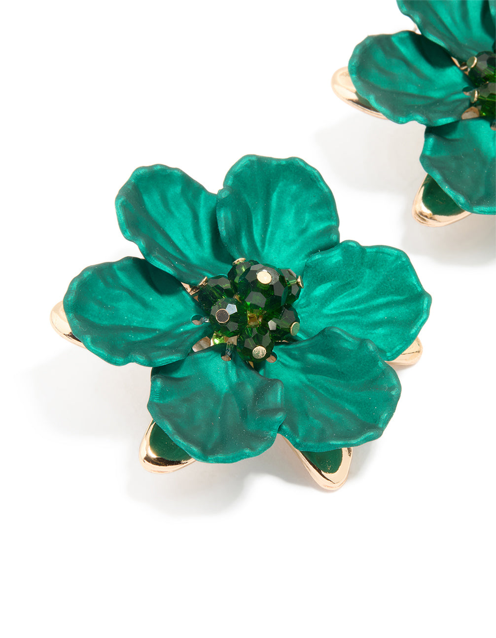 Make a statement with these Gold Green Pearlised Extra Large Flower Earrings. These striking stud earrings feature oversized floral designs with a pearlised finish, blending elegance with drama. Perfect for parties, weddings, or a glam night out, they pair beautifully with flowing dresses or sleek eveningwear. These earrings bring a touch of edgy sophistication to any outfit. Whether you're dressing up for a special occasion or adding flair to your everyday look, these earrings are your go-to for unforgettable style.