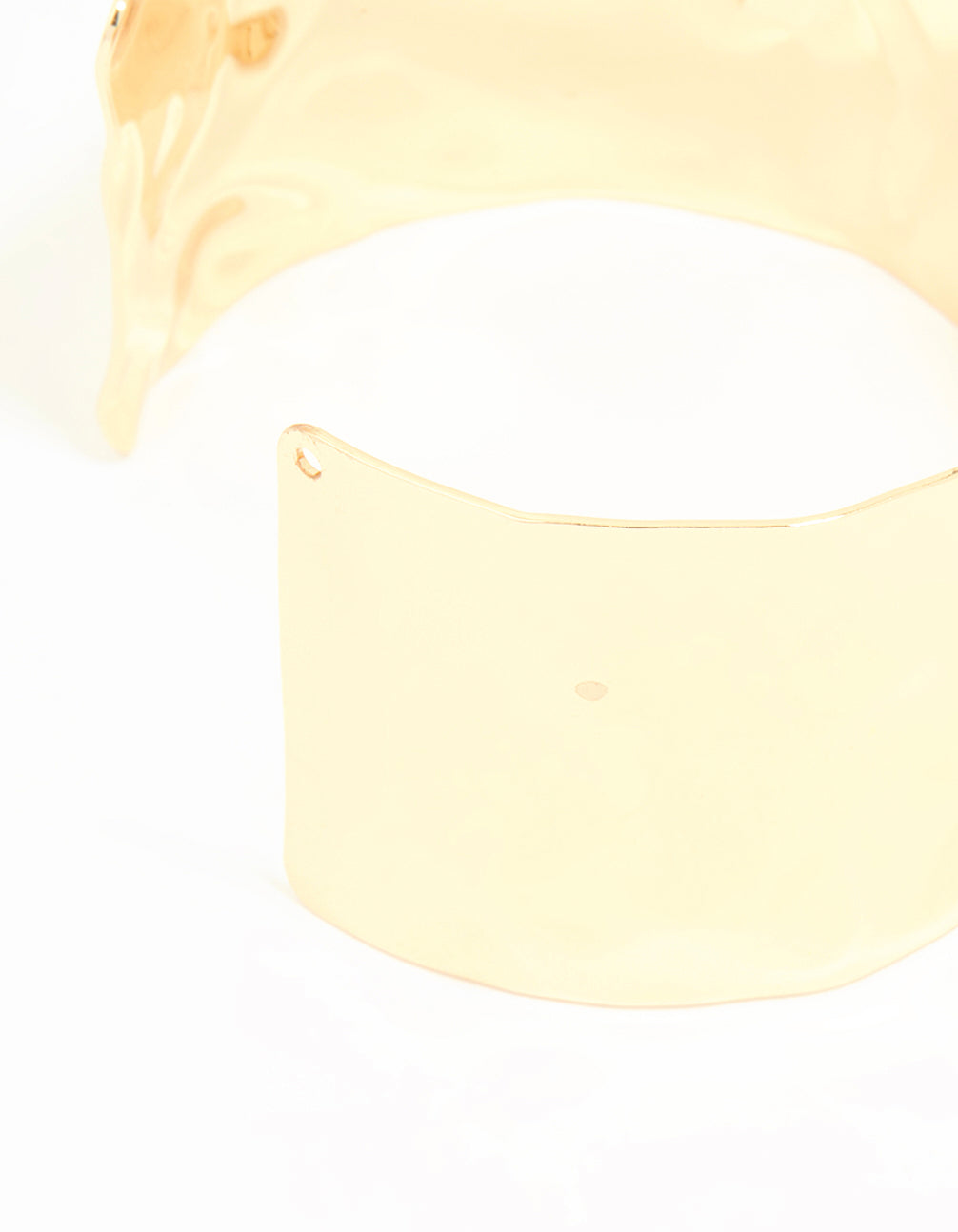 Elevate your accessory game with this Gold Hammered Classic Wrist Cuff. Crafted in a gold-toned metal with a hammered texture, this classic cuff bracelet is a versatile must-have for any jewellery collection. Its sleek, curved shape makes it easy to wear, whether you're dressing up for a fancy dinner or adding a chic touch to your everyday look. Perfect for pairing with other bangles or wearing solo as a statement piece, this wrist cuff complements everything from flowy dresses to tailored blazers.