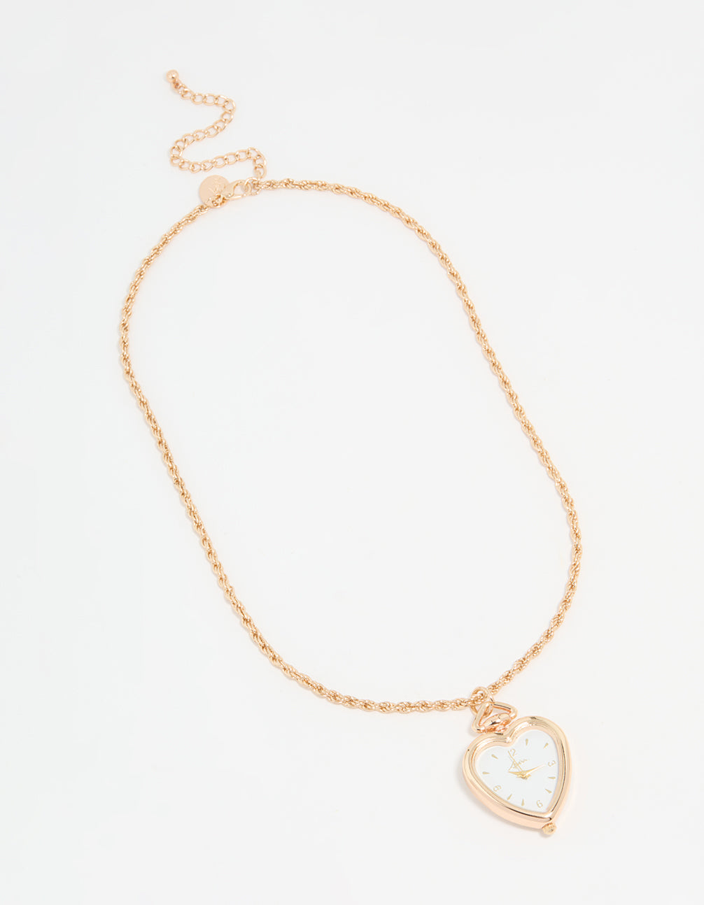 Stay stylish and on time with this Gold Heart Pocket Watch Necklace! This vintage-inspired necklace features a charming heart-shaped pendant in a gleaming gold-tone finish, housing a fully functional heart shaped pocket watch. Perfect for adding a touch of old-school elegance to your everyday outfits or dressing up for special occasions, it pairs effortlessly with everything from casual tees to evening dresses. Whether you're after a unique accessory, a timeless timepiece, or a statement necklace, this versatile piece has you covered. This necklace is your go-to for turning heads and staying punctual!