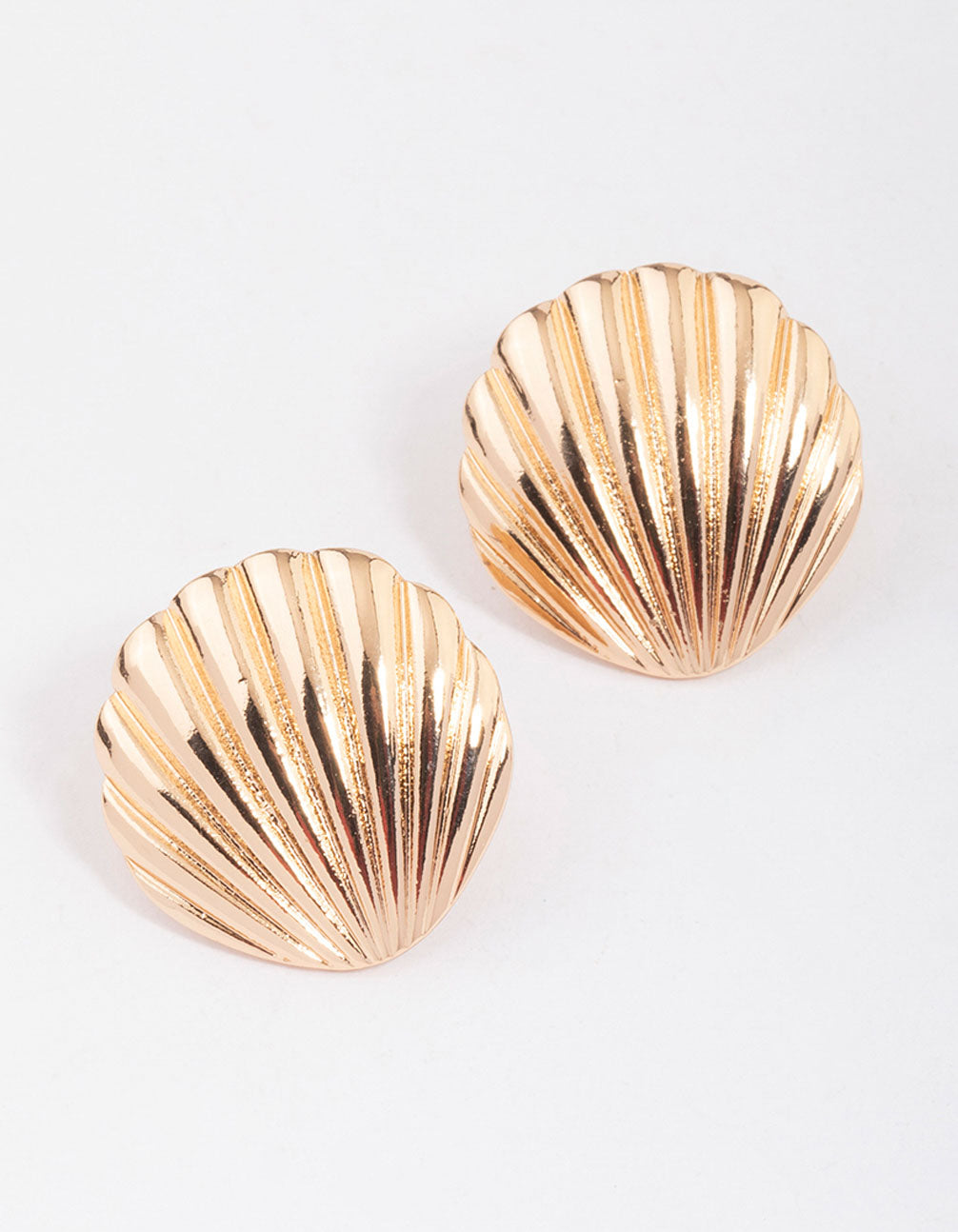 Gold Large Clam Stud Earrings