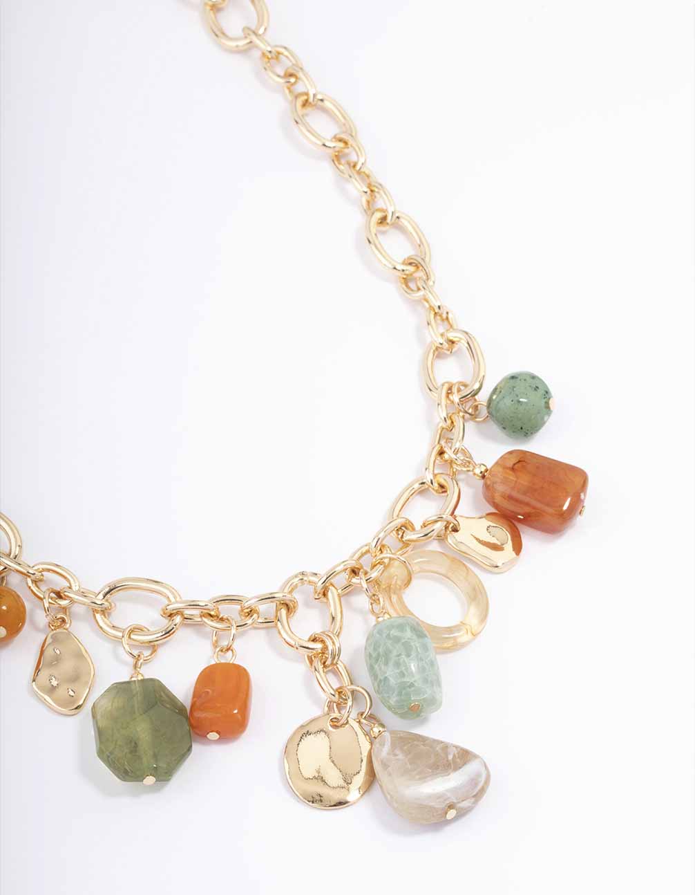 This beautiful necklace features a chunky gold chain adorned with colourful charms and stones for an eye-catching finish.