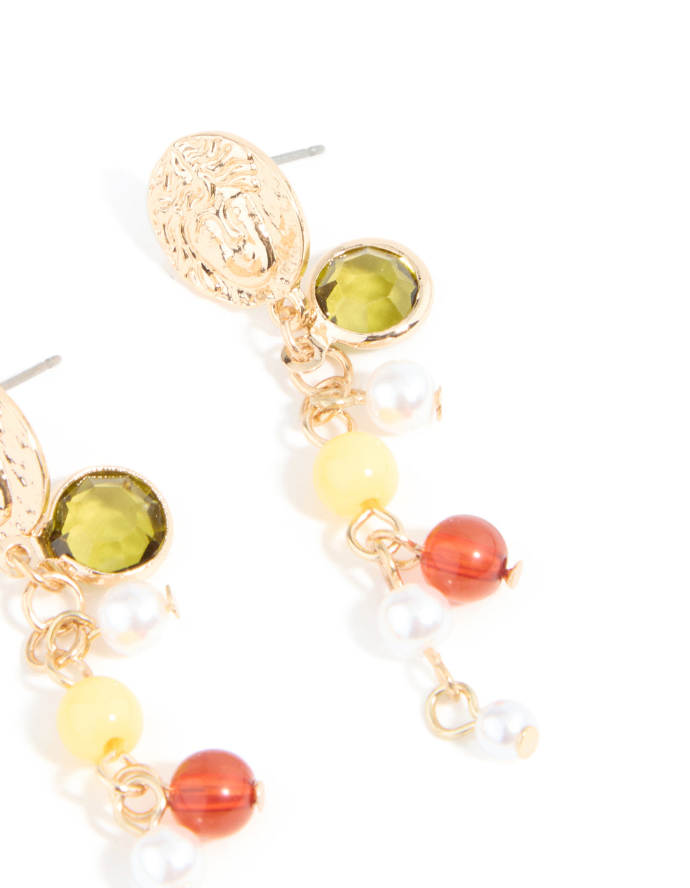 Gold Multicoloured Beaded & Molten Disc Drop Earrings