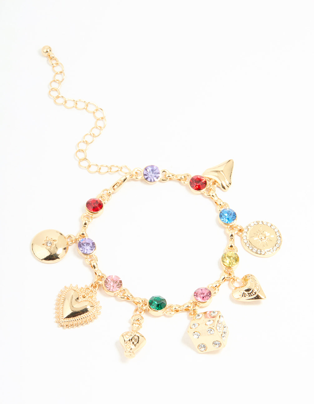 Gold Multicoloured Diamante Heart & Celestial Charm Bracelet