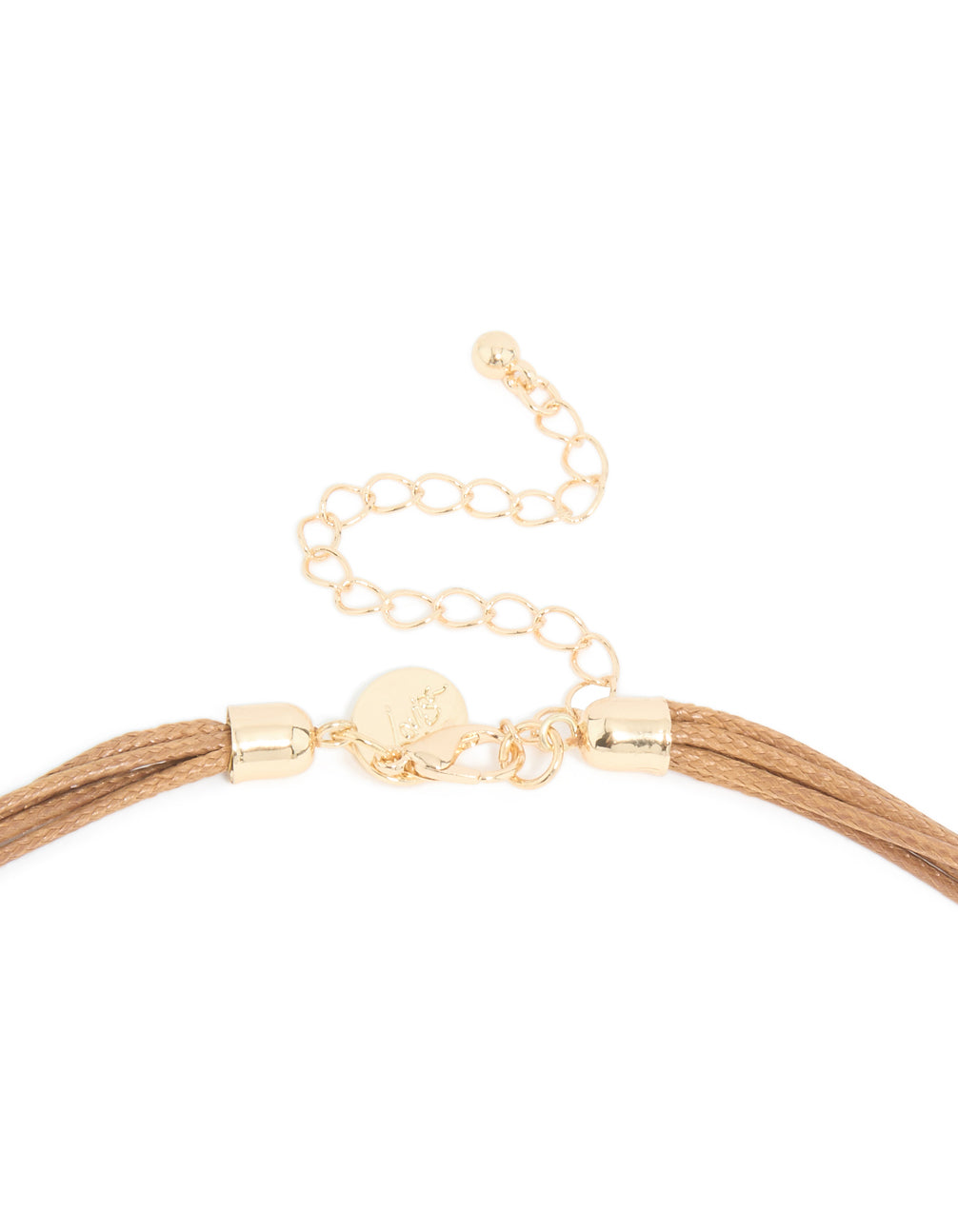 Gold Open Pendant Brown Cord Layered Long Necklace