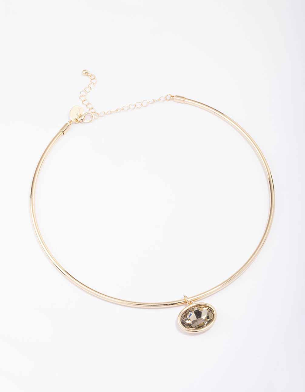 This choker is designed with a thin, solid gold chain and is adorned with an oval facet stone for a hint of glamour.