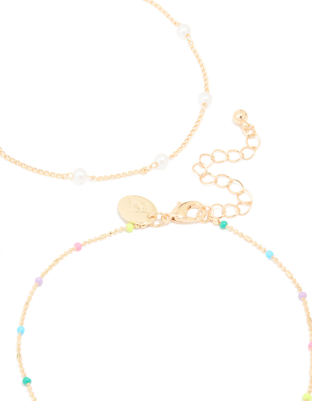 Gold Pastel Beaded & Pearl Flower Anklets 3-Pack
