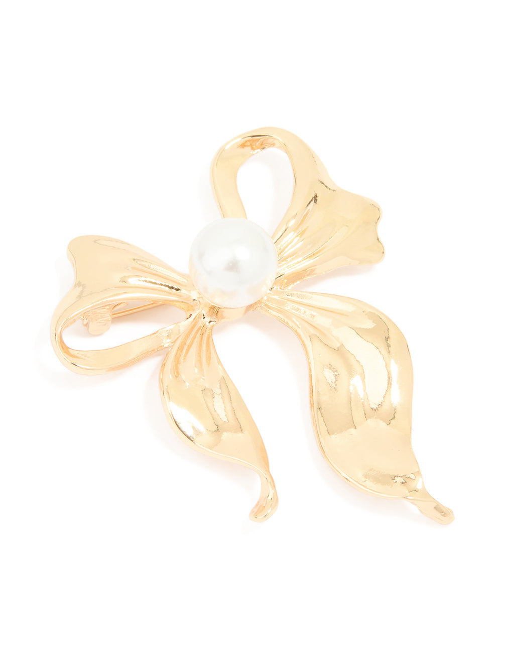 Add a touch of timeless elegance to your outfit with this Gold Pearl Center Bow Brooch. This charming brooch features a delicate bow design in a gleaming gold-tone finish, with a classic pearl nestled at its centre for a sophisticated twist. Ideal for pinning onto jackets, blazers, dresses, or even bags, it's a versatile accessory that effortlessly elevates your look. Perfect for weddings, parties, or simply adding a dash of glamour to your everyday style, this brooch is a must-have for lovers of badges, pins, and chic embellishments. Pair it with a flowy dress for a romantic vibe or use it to glam up your workwear—this brooch does it all!