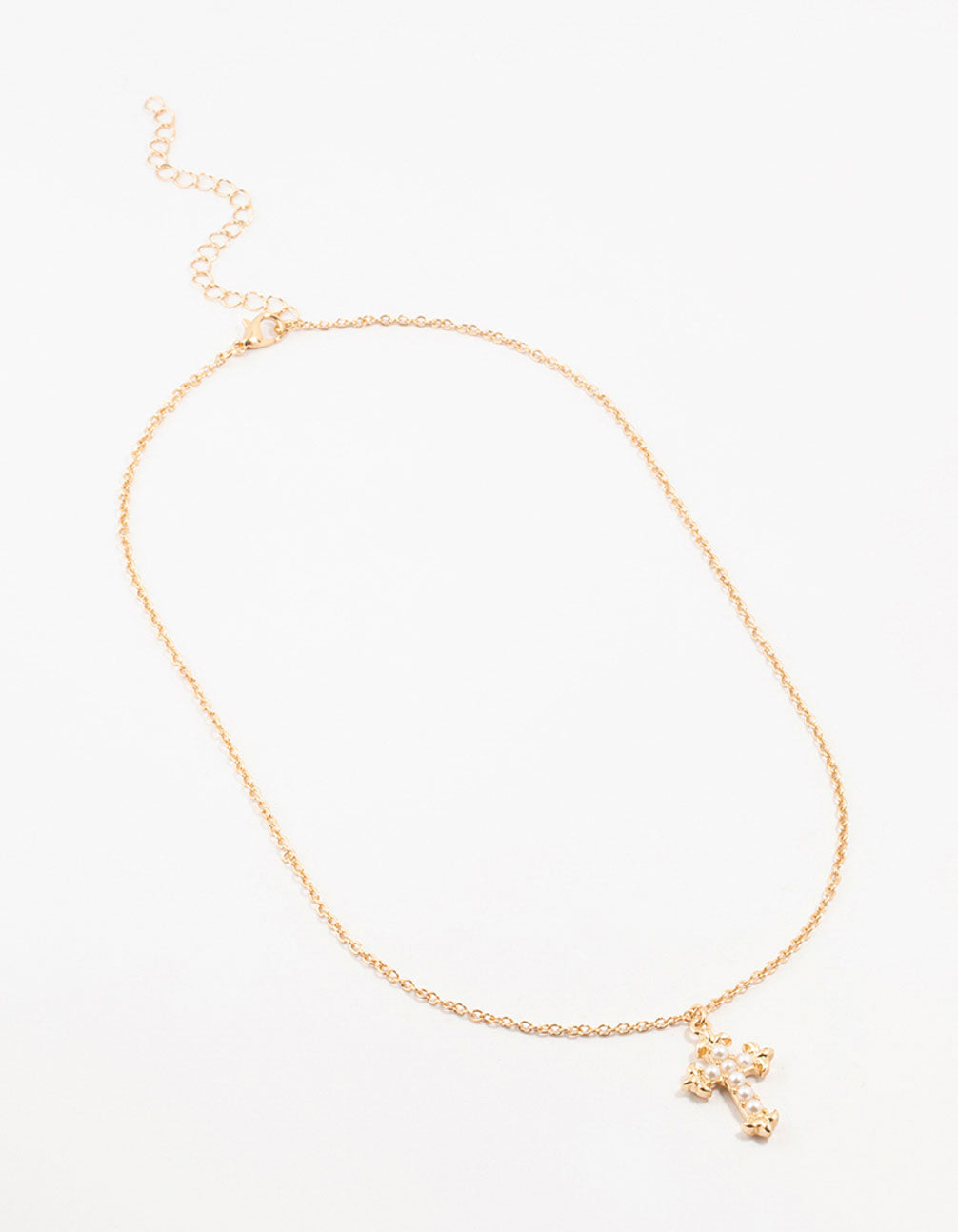 Gold Pearl Cross Necklace
