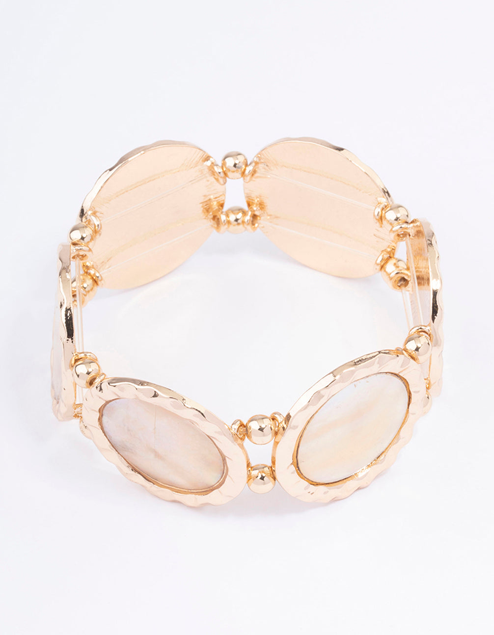Style this Gold Pearl Disc Bracelet for a refined finish to your bracelet stack.