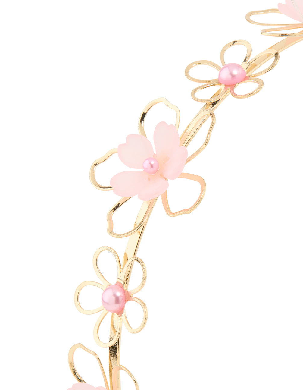 Elevate your look with this stunning Gold Pearl Flower Headband. Featuring delicate gold-toned metal adorned with dainty floral accents and lustrous pearls, this headband strikes the perfect balance between chic and timeless. Ideal for weddings, garden parties, or adding a touch of glamour to everyday outfits, it pairs beautifully with flowing dresses or tailored looks alike. Whether you're styling your hair for a special occasion or just want a hint of sparkle, this headband is lightweight, comfortable, and endlessly versatile. Perfect for those who love jewellery-inspired hair essentials, it's your go-to accessory for standout style!