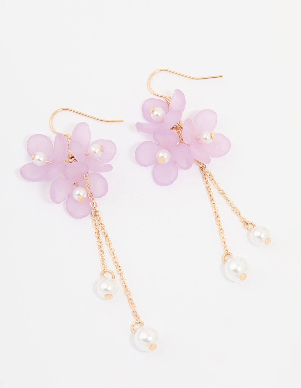 Gold Pearl & Pink Flower Chain Drop Earrings