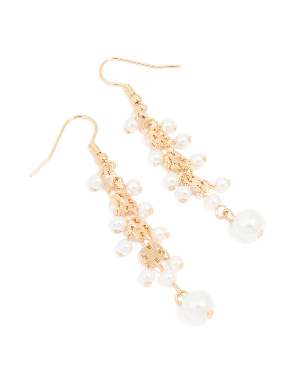 Gold Pearl Round Drop Earrings