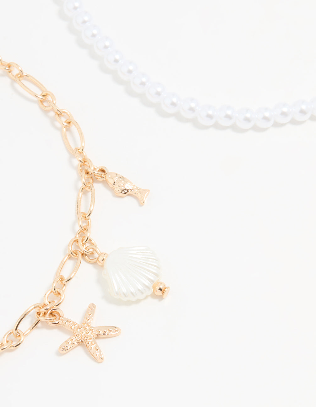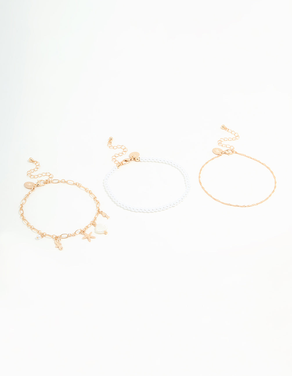 Gold Pearl Sea Anklets 3-Pack Gold Pearl Sea Anklets 3-Pack Gold Pearl Sea Anklets 3-Pack