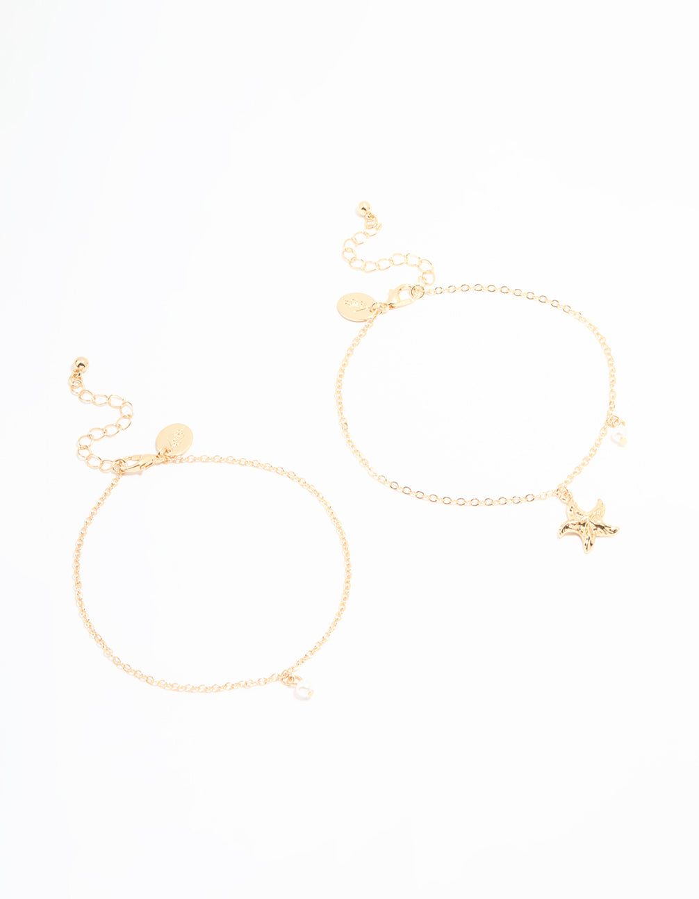 Gold Pearl & Starfish Anklets 2-Pack Gold Pearl & Starfish Anklets 2-Pack Gold Pearl & Starfish Anklets 2-Pack