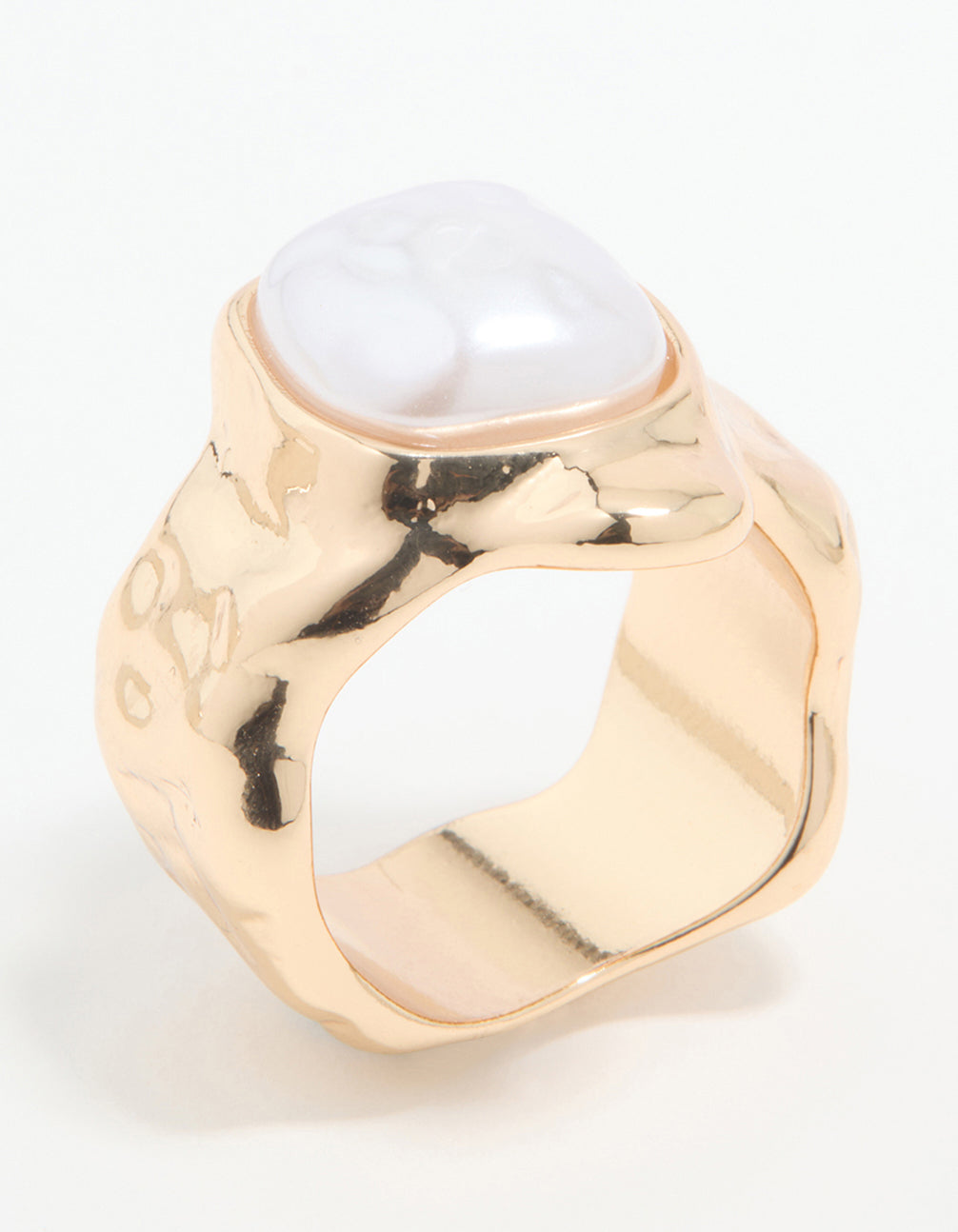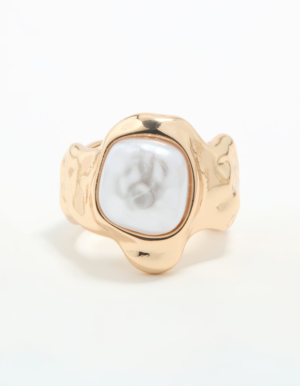 Elevate your jewellery game with this Gold Pearl Statement Molten Ring. Crafted with a molten texture design and featuring a luminous pearl detail, this gold-toned ring adds a touch of vintage-inspired charm to any outfit. Perfect for everyday wear or special occasions, it's versatile enough to pair with everything from casual denim to elegant eveningwear. Whether you're styling it solo for a minimalist vibe or layering it with other gold rings for a stylish stacked look, this statement ring is a must-have for lovers of unique and eye-catching jewellery. Ideal for those who adore rings with a mix of classic pearls and contemporary textures, this piece is your shortcut to chic!