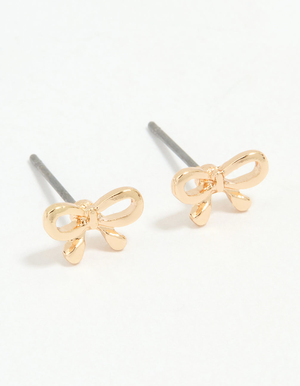 Add a touch of charm to your jewellery collection with these Gold Petite Bow Stud Earrings. These stud earrings feature a delicate bow shape, designed in a gold-tone finish that's perfect for adding a subtle yet stylish accent to any outfit. Lightweight and versatile, they're ideal for everyday wear or for dressing up casual looks. Whether you're heading to a coffee date, a dinner with friends, or simply want to elevate your workwear, these earrings pair beautifully with everything from flowy dresses to tailored blazers. Their petite size makes them effortless and comfortable, while the bow design adds a playful yet elegant touch. Perfect for anyone who loves timeless jewellery with a youthful twist!