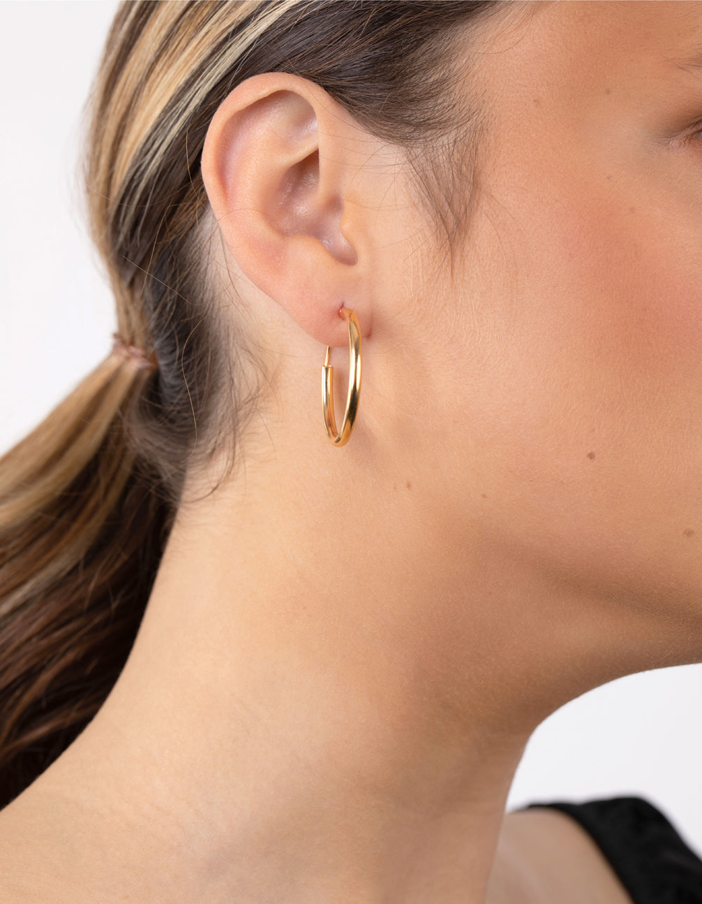 This gold plated sterling silver pair of hoop earrings will remain a wardrobe staple throughout every season.