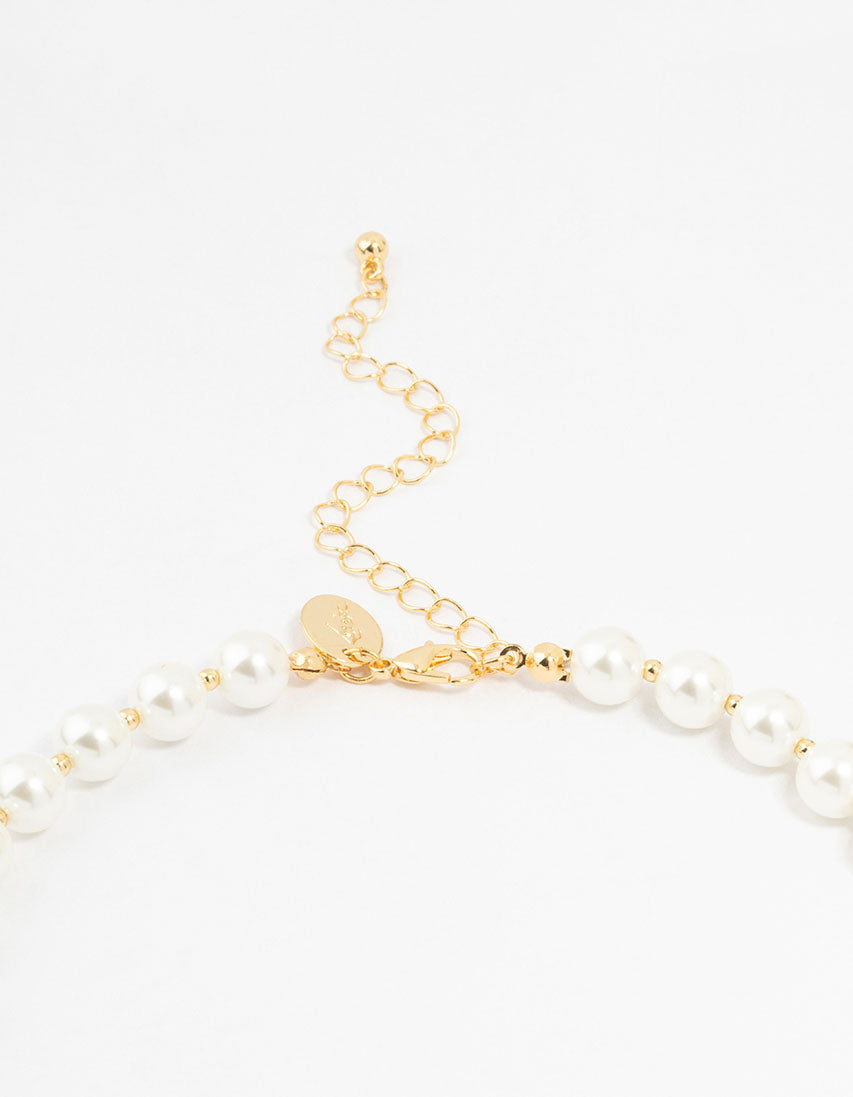 Gold Plated Alternating Medium Pearl & Ball Necklace