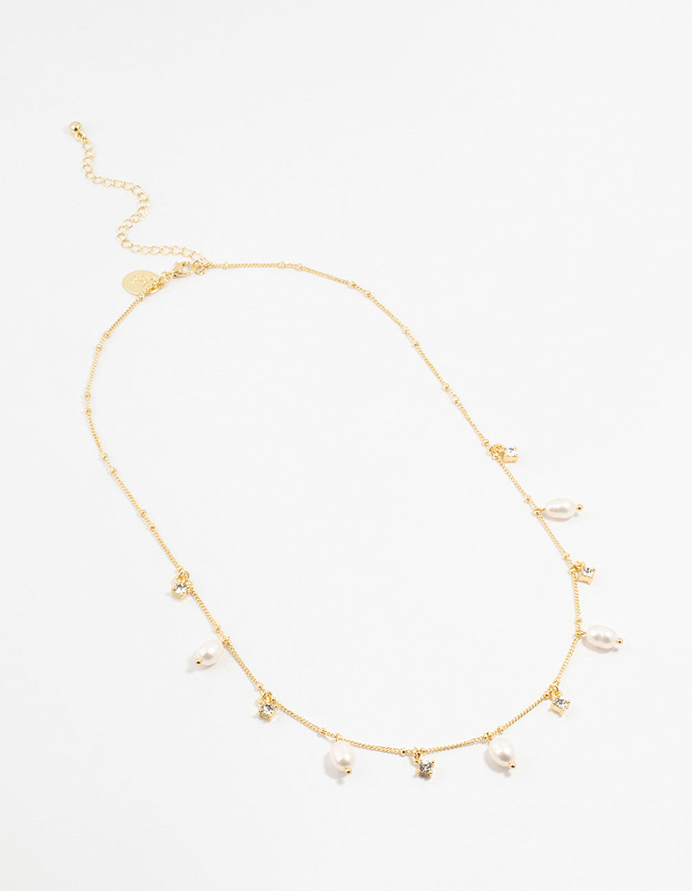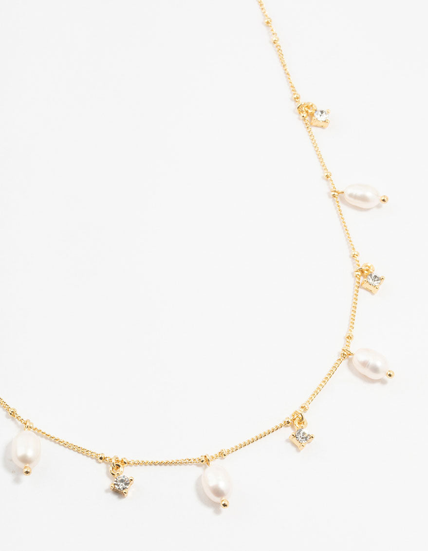 Gold Plated Alternating Pearl & Cubic Zirconia Station Necklace