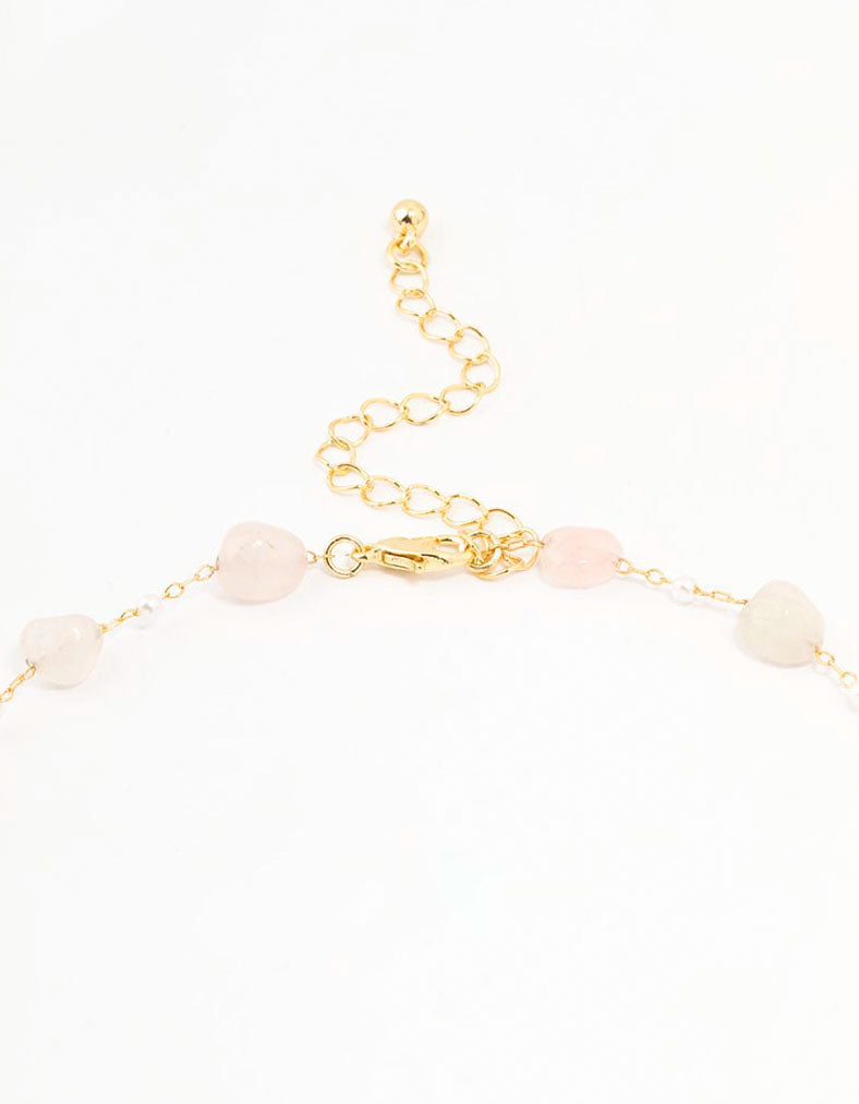 - Material: Clear Quartz, Gold Plated, Rose Quartz