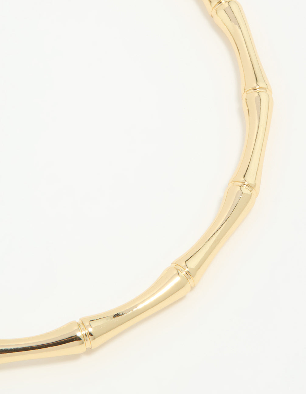 Elevate your accessory game with this Gold Plated Bamboo Bangle. Crafted in a bamboo design and plated with gold, this bangle is perfect for adding a hint of sophistication to both casual and formal outfits. Whether you're dressing up for a night out or adding flair to a daytime look, this chic bracelet pairs beautifully with everything from flowy dresses to tailored blazers. Its versatile style makes it a must-have for jewellery lovers seeking bangles that stand out. Ideal for layering with other bracelets or wearing solo for a minimalist vibe, this piece is your go-to for effortless style.