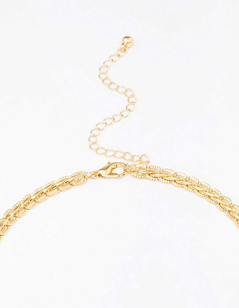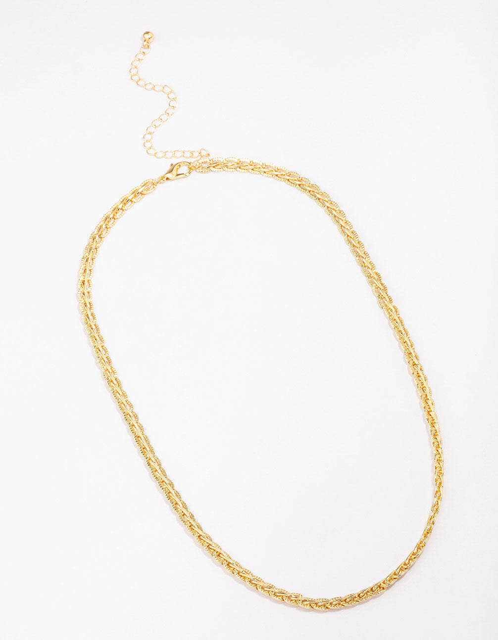 Keep things simple with this gorgeous, gold plated necklace. This unique chain necklace features a modern, braided design. Perfect for adding weight to your necklace stack!
