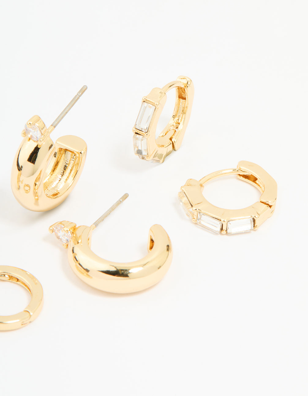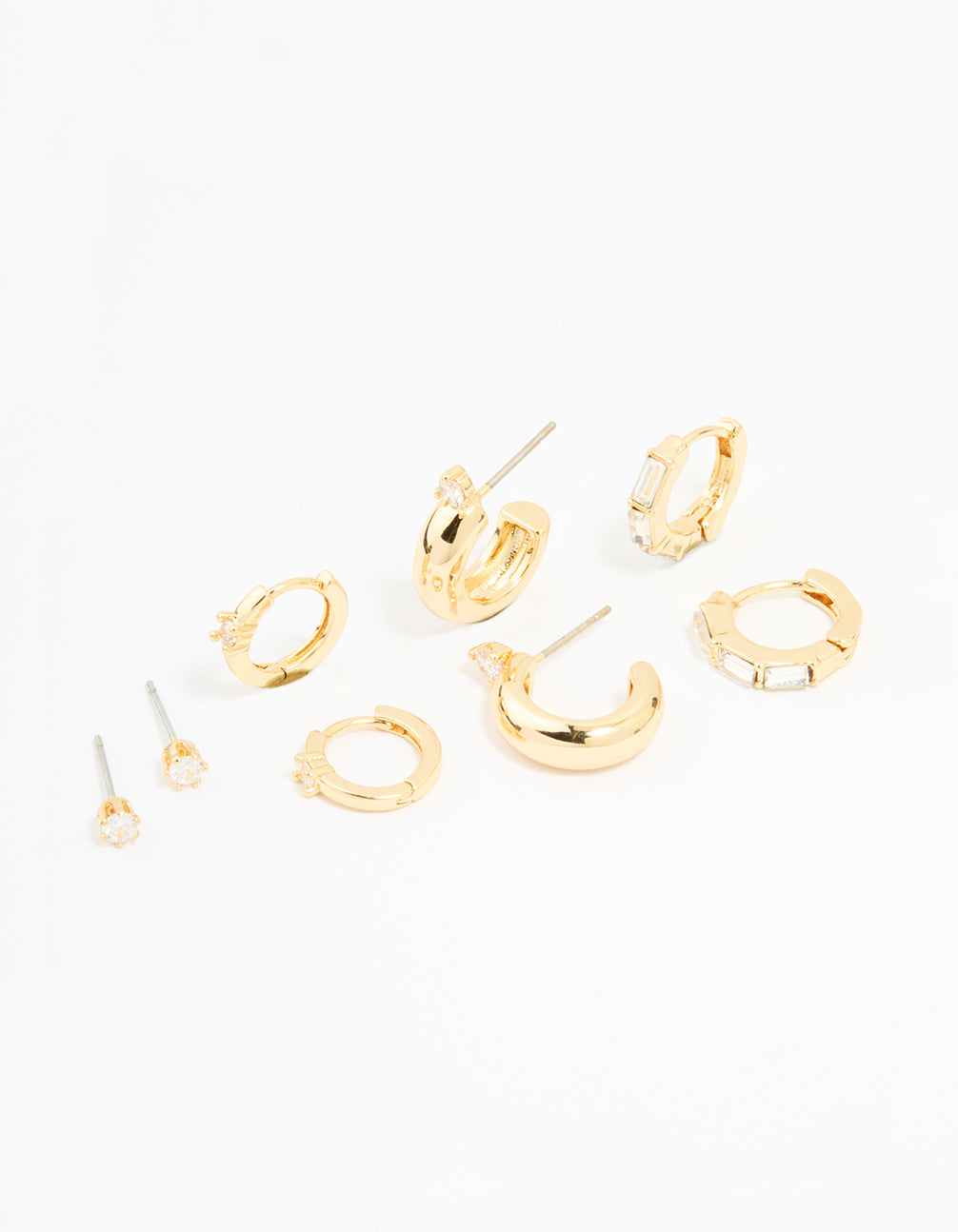 Gold Plated Brass Cubic Zirconia Huggie & Stud Earrings 4-Pack Gold Plated Brass Cubic Zirconia Huggie & Stud Earrings 4-Pack Gold Plated Brass Cubic Zirconia Huggie & Stud Earrings 4-Pack