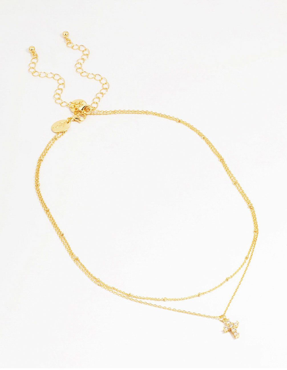 Gold Plated Brass Cubic Zirconia Mini Cross Layered Necklace