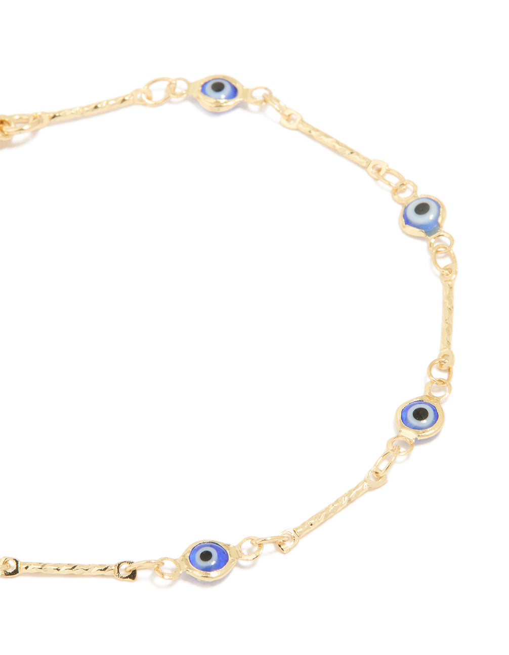 Gold Plated Brass Evil Eye Stone Chain Bracelet