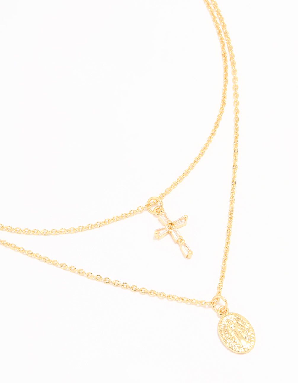 • Gold Plated Cross & Mary Layered Necklace - link has visual effect only