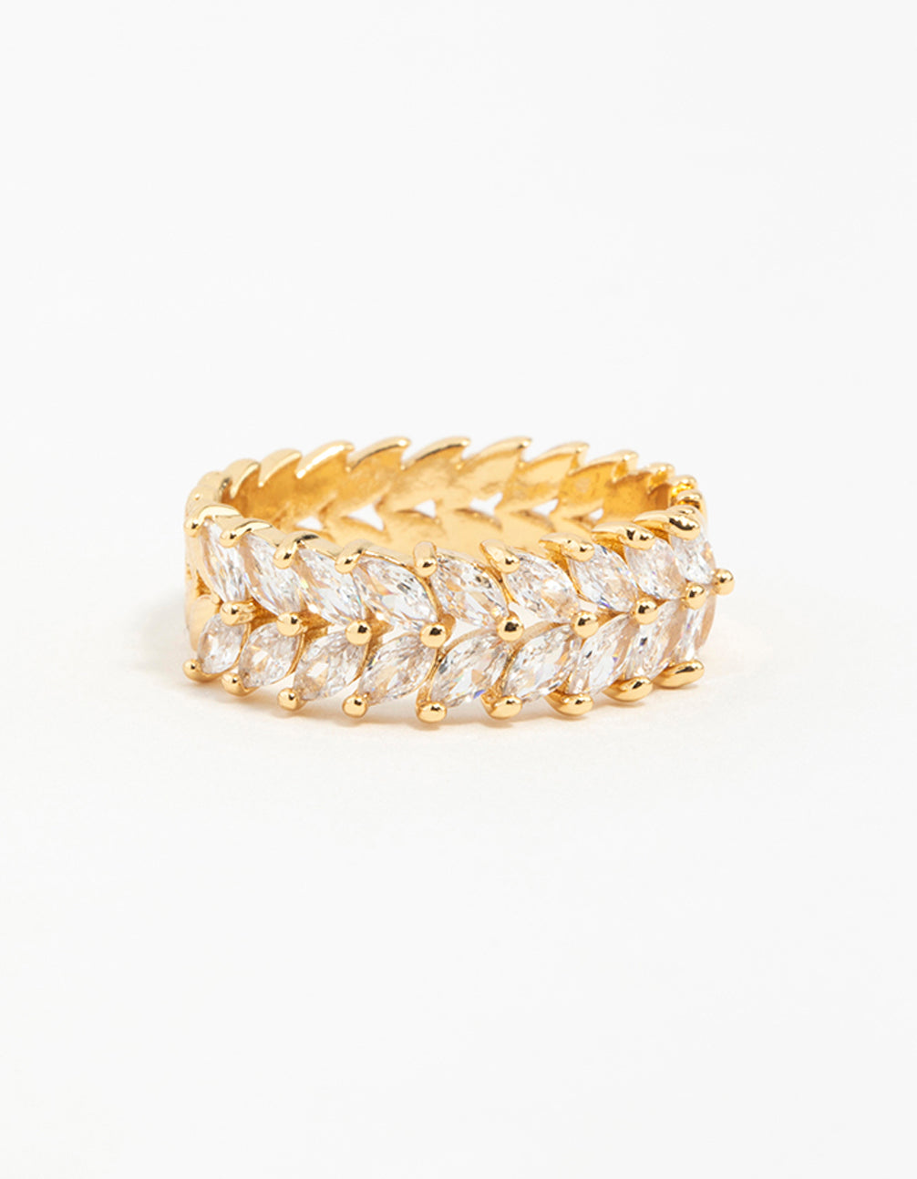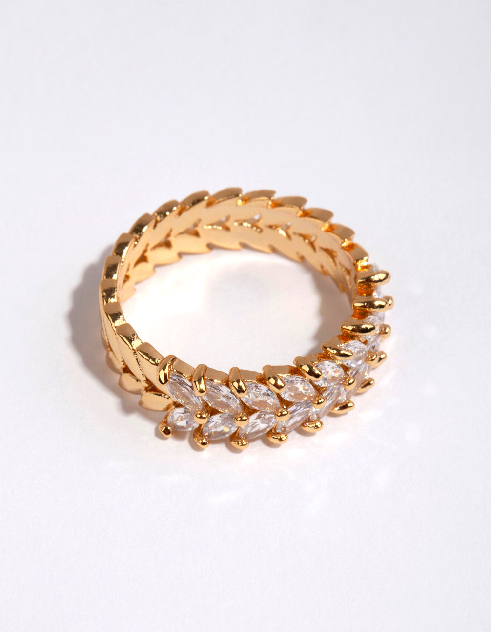 Gold Plated Navette Cubic Zirconia Layered Ring