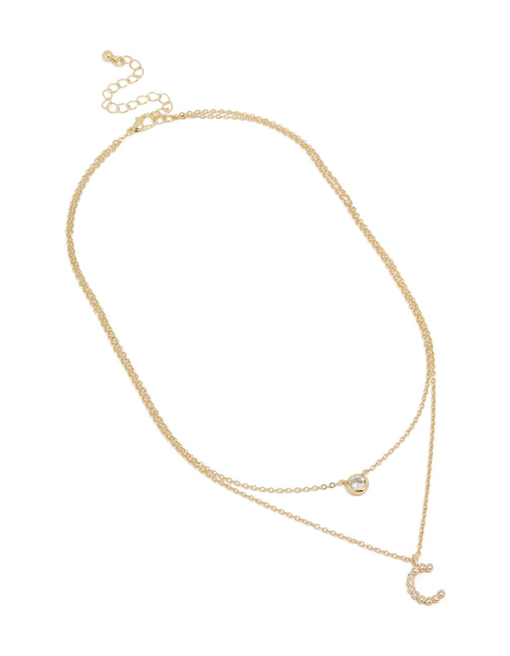 Gold Plated Cubic Zirconia Bezel Letter C Layered Necklace