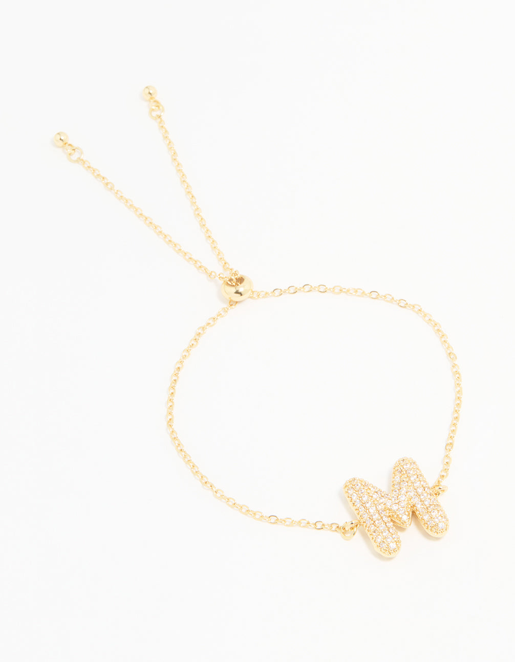 Looking for a way to personalise your style? This Gold Plated Cubic Zirconia Bubble M Pavé Toggle Bracelet is a must-have! This elegant bracelet combines a gold-plated finish with dazzling cubic zirconia crystals, arranged in a chic bubble letter 'M' pavé design. Featuring the letter 'M', it's perfect for adding a personal touch to your look or gifting someone special with their initial. The toggle clasp not only adds a stylish detail but also makes it easy to wear. Ideal for dressing up a casual outfit or complementing evening wear, this bracelet is versatile and timeless. Pair it with other gold jewellery or let it shine solo—either way, it's a standout accessory!