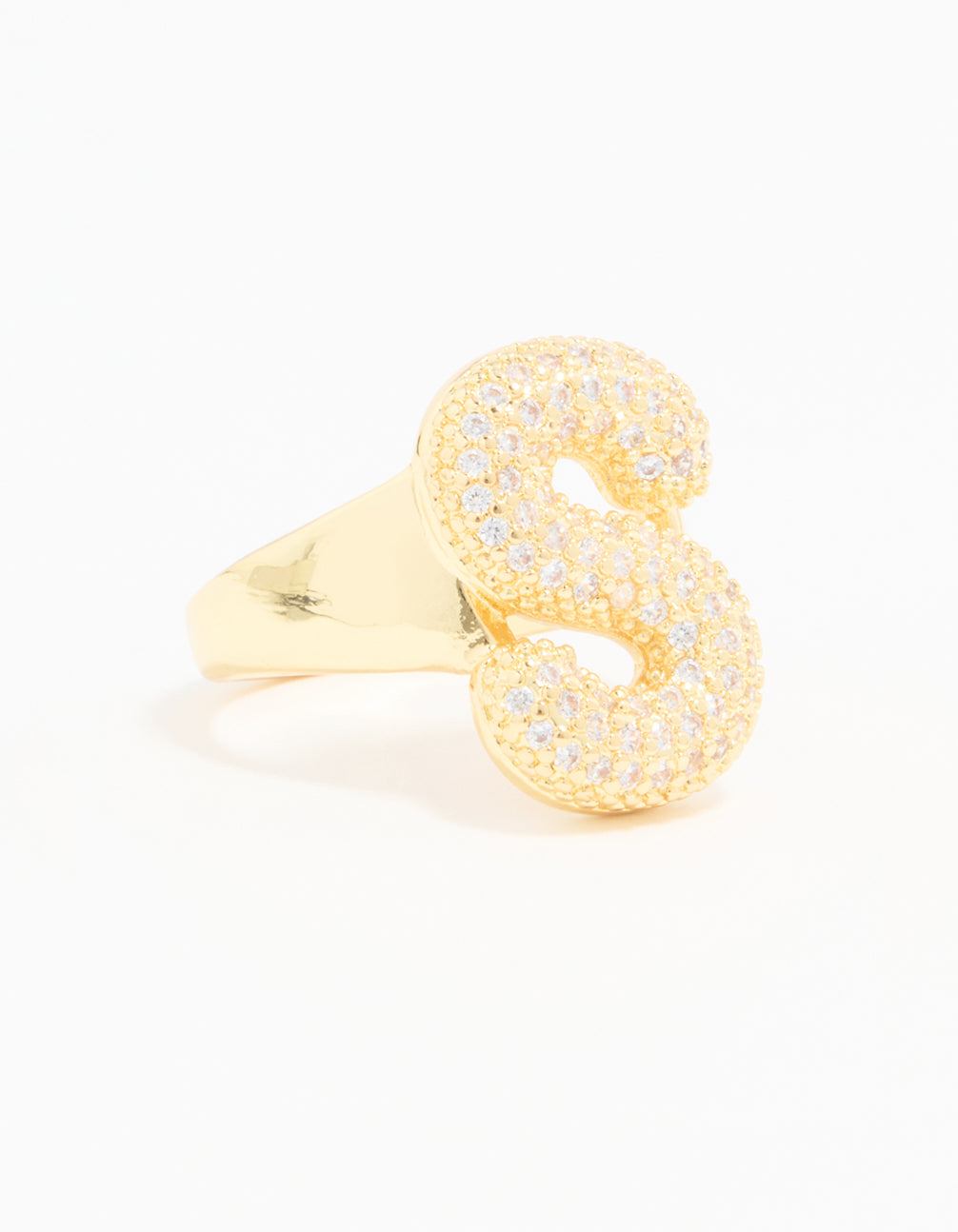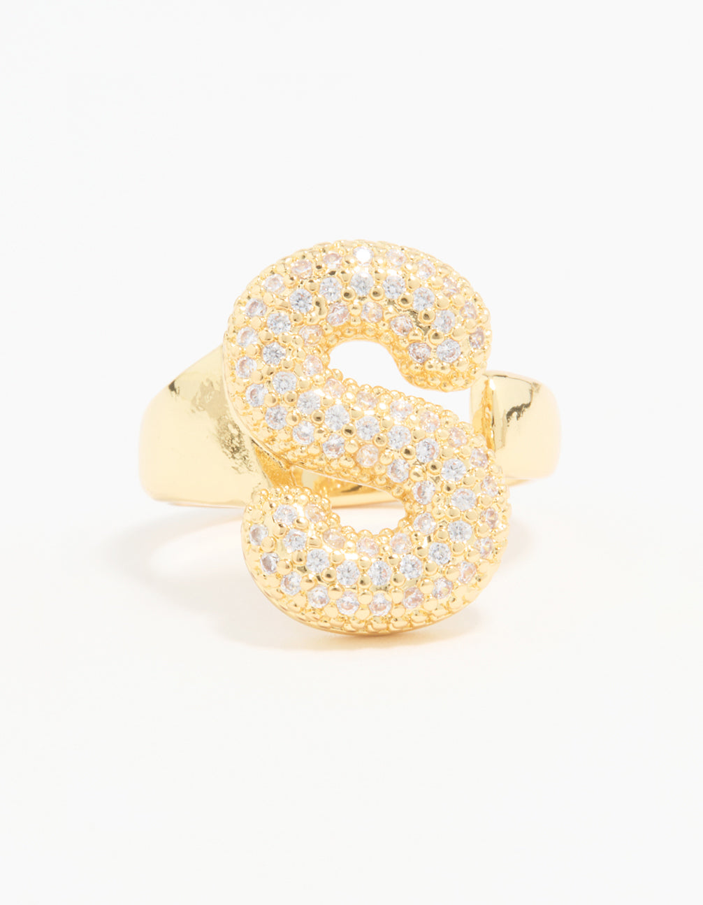 Add a personal touch to your jewellery collection with this Gold Plated Cubic Zirconia Bubble S Pavé Ring. Crafted in a sleek gold-plated finish, this stylish fashion ring features a bubble-inspired letter 'S' design adorned with sparkling cubic zirconia crystals. The standout feature? A chic pavé letter 'S' lets you personalise your look or makes for a thoughtful gift for someone special. Perfect for everyday wear or adding a little glamour to your evening outfit, this ring is an effortless way to showcase your individuality. Pair it with other gold jewellery for a coordinated look or let it shine solo for understated elegance. Whether dressing up jeans and a tee or complementing your party attire, this ring is a versatile piece that combines fun, sophistication, and a touch of sparkle.