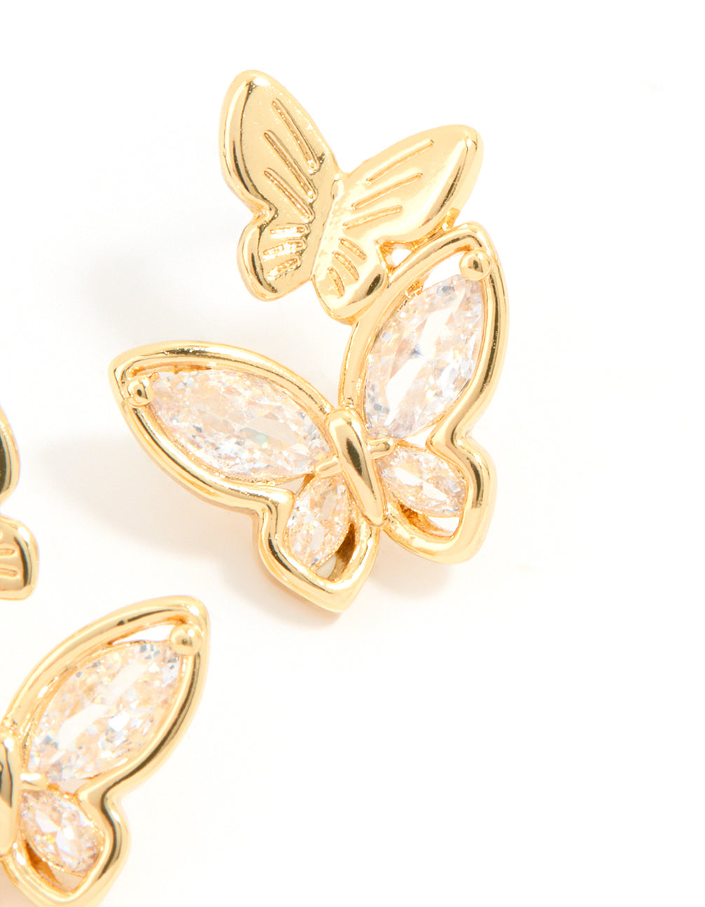 Gold Plated Cubic Zirconia Butterfly Stud Earrings