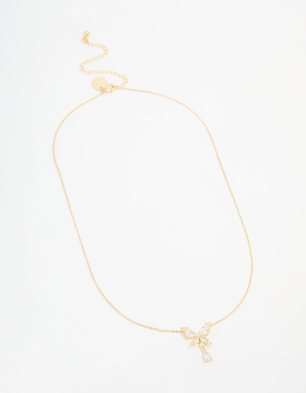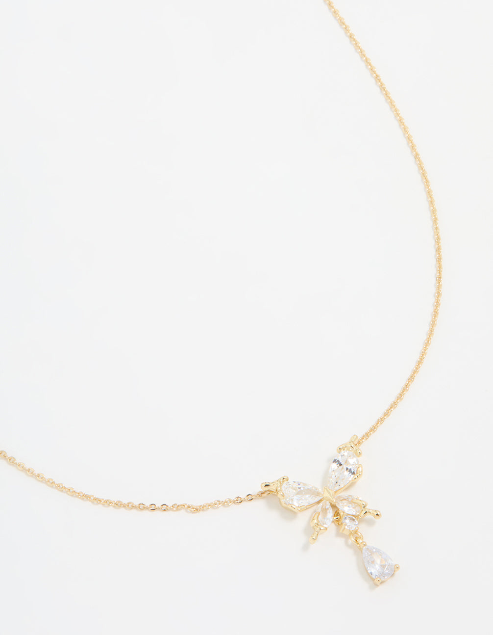 Gold Plated Cubic Zirconia Butterfly Teardrop Necklace