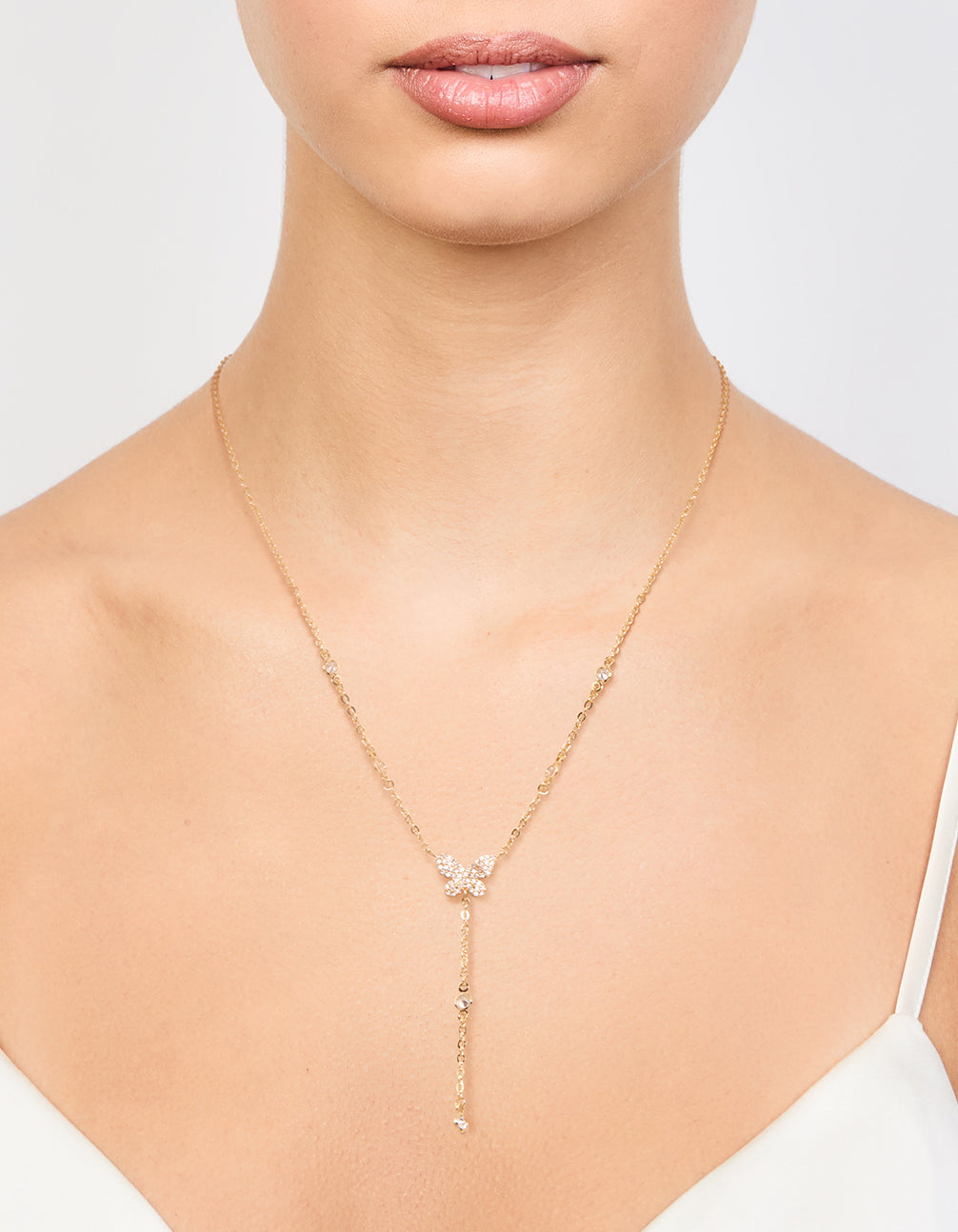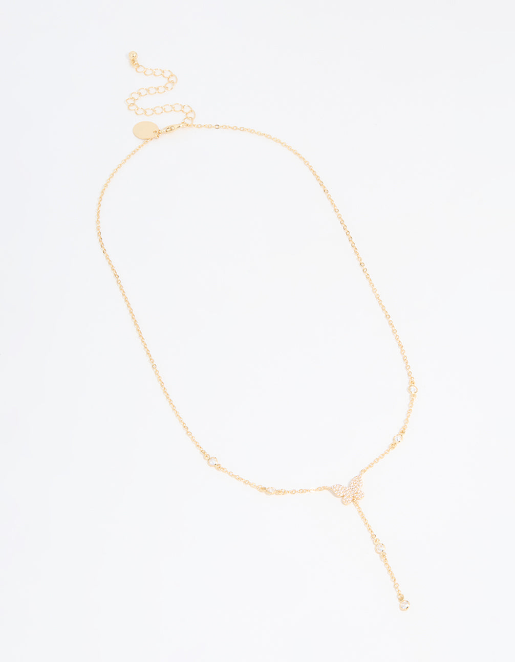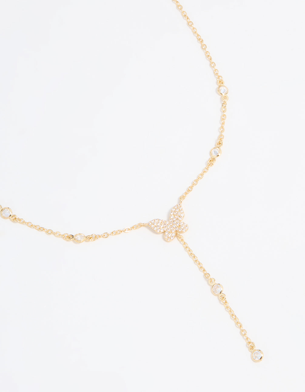 Gold Plated Cubic Zirconia Butterfly Y-Necklace